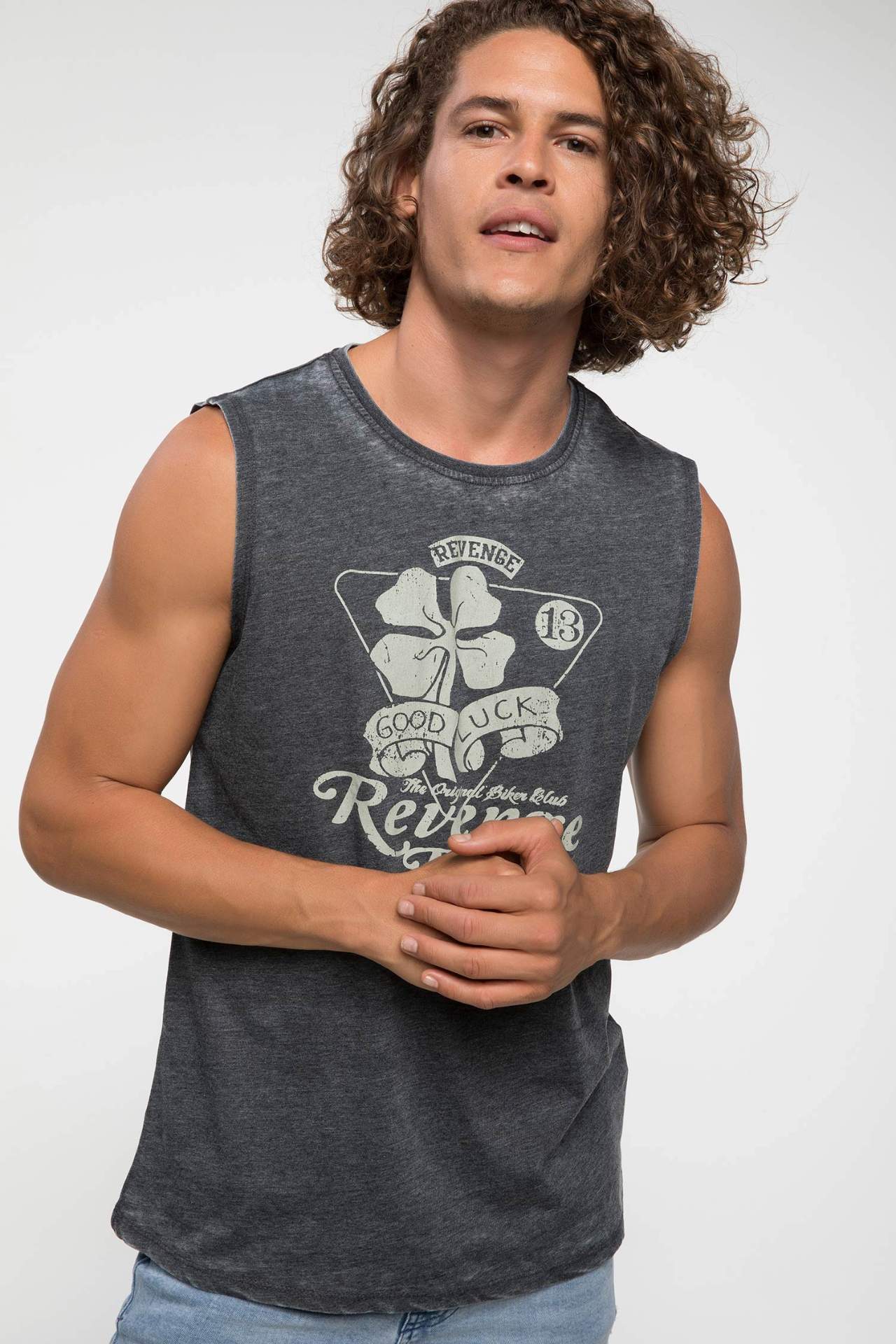 Отзывы о Мужская Трикотажная майка DeFacto темно-серая Повседневная футболка без рукавов с