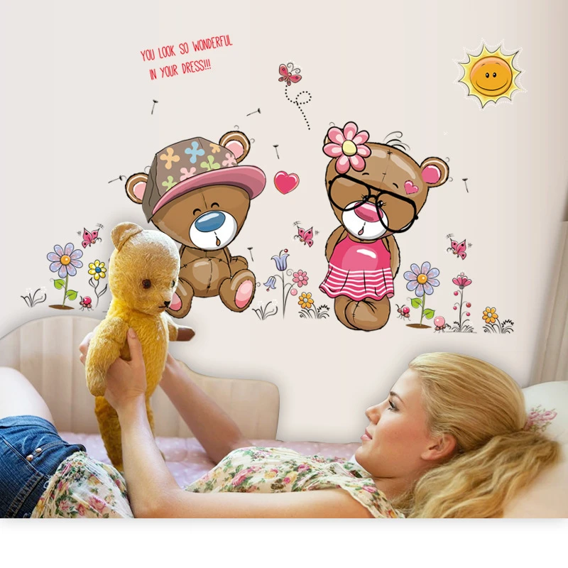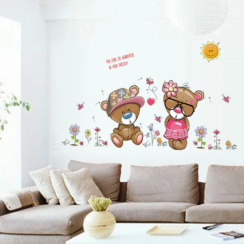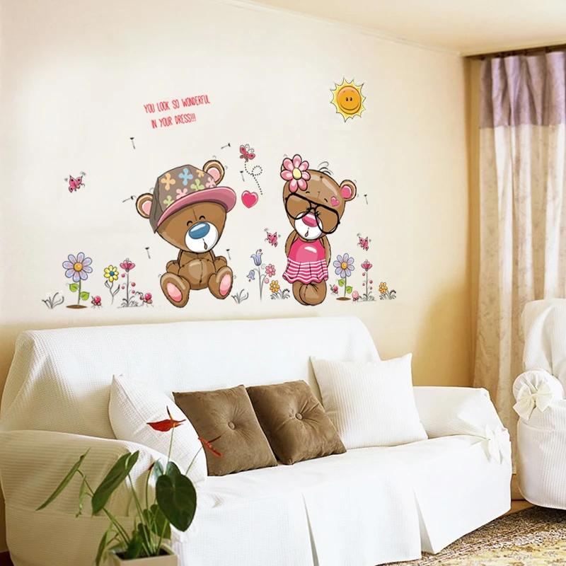 Отзывы о Настенные Стикеры украшение для дома милая мультяшная пара медведей детская