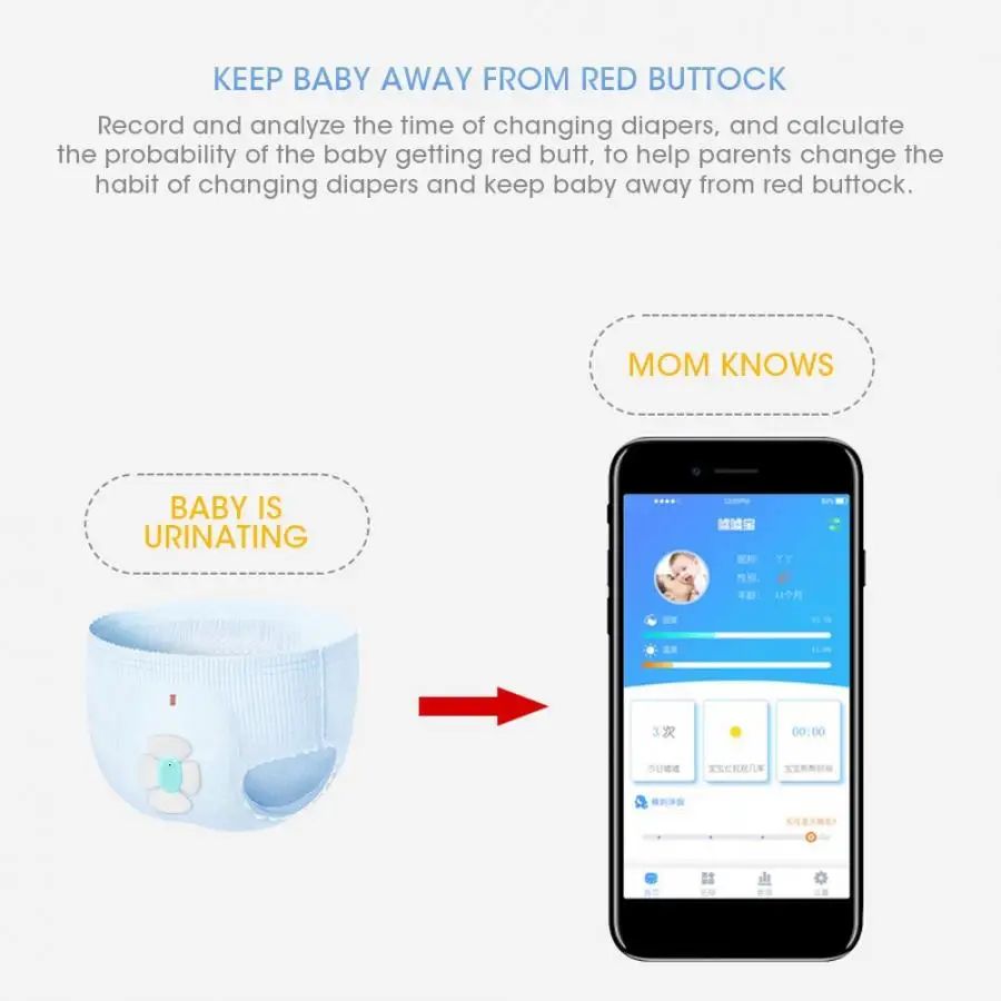 2. Высокая чувствительность и быстрая сигнализация после того, как подгузник промокает, эффективно предотвращает появление Красной ягодицы.
