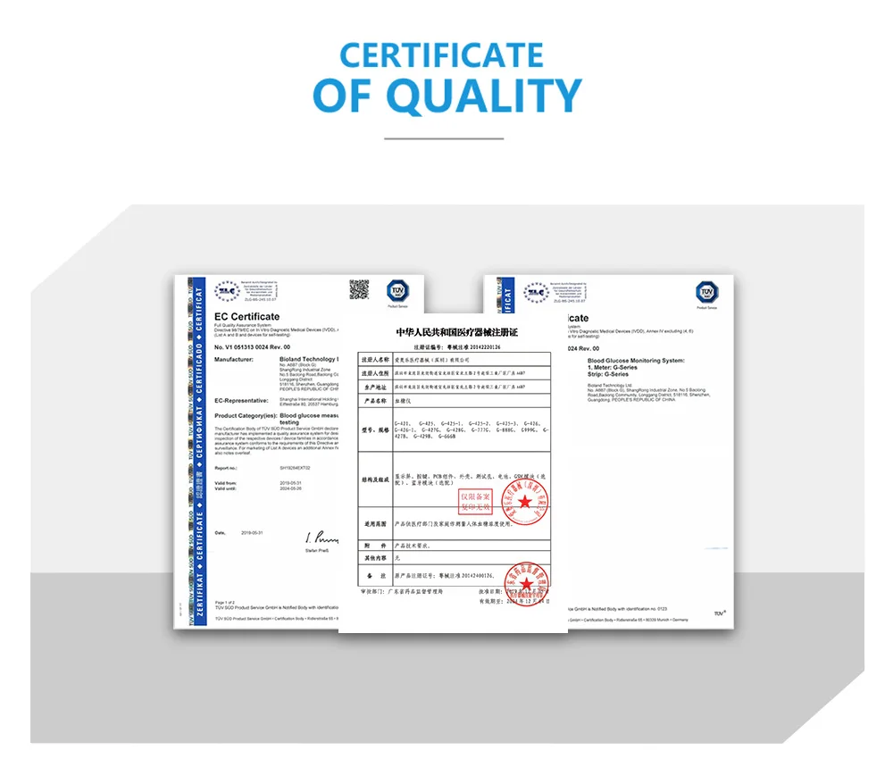 Глюкометр * 1 Игла для сбора крови * 1 Ящик для хранения * 1 Упаковочная коробка * 1 Тест-полоска * 50 Игла * 50 Тест чип * 1 Руководство * 1
