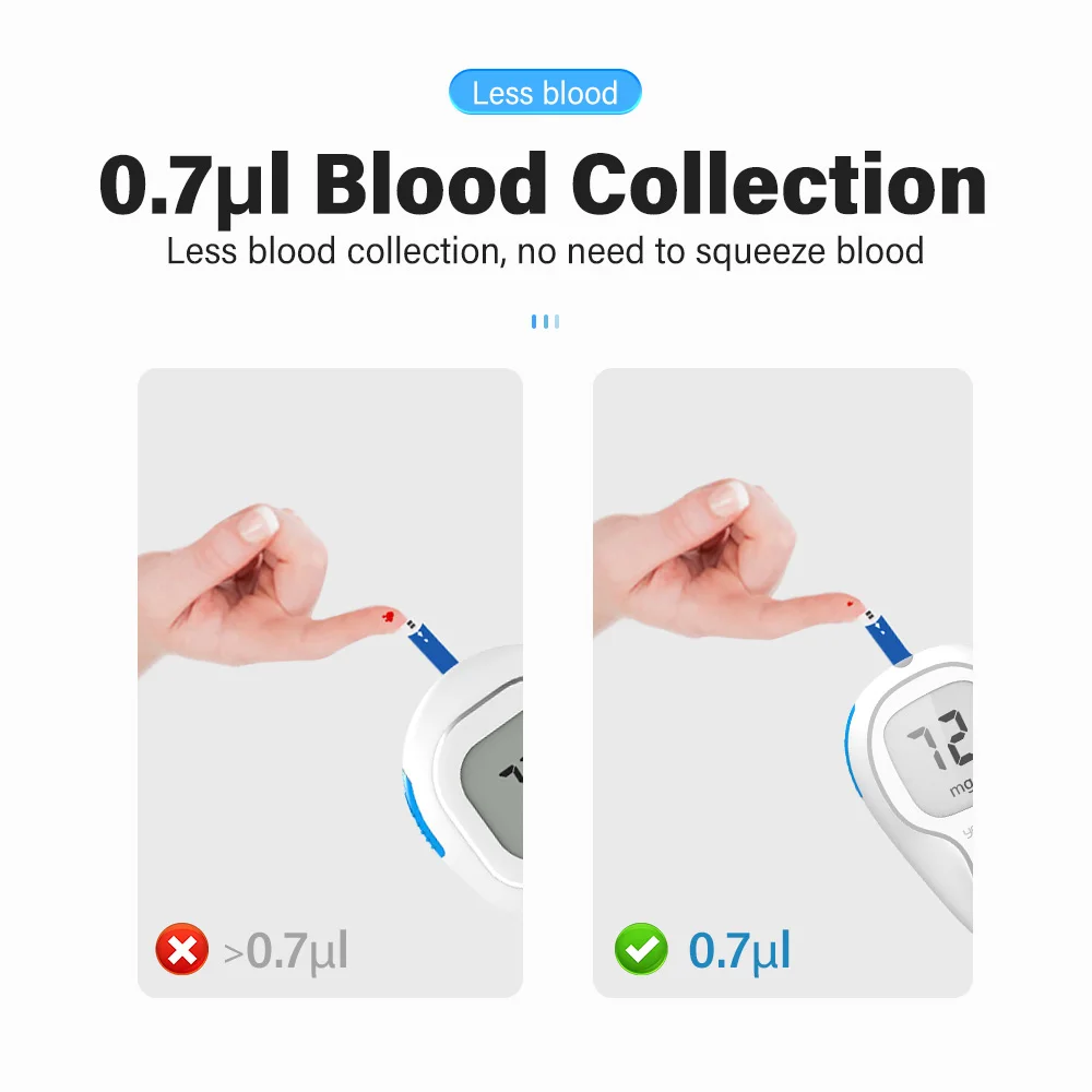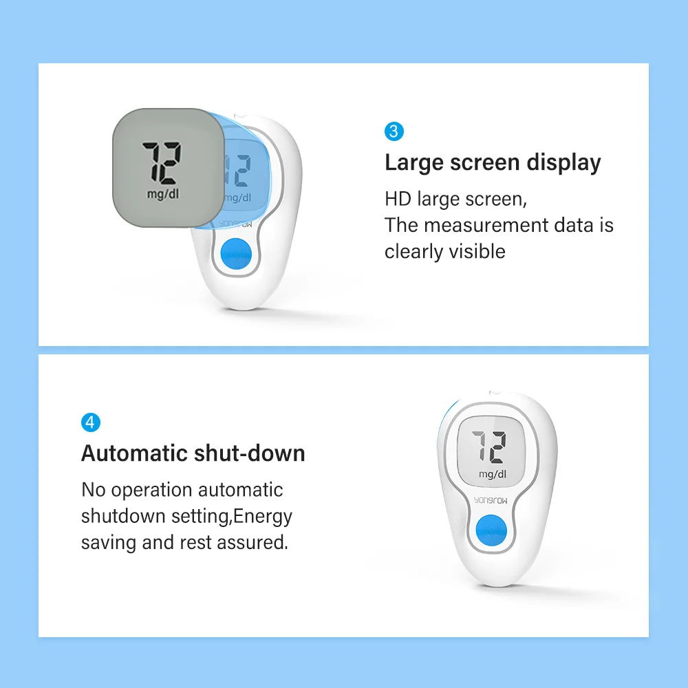 Более детальный дизайн, лучший пользовательский опыт 1. Автоматические возвратные тестовые полоски автоматически возвращаются, нет необходимости в чистке и гигиеничности. 2. Легкое и портативное удобное хранение, само-tes глюкозы в любое время и в любом месте 3. Большой экран HD большой экран, данные измерений хорошо видны 4. Автоматическое выключение без операции автоматическое выключение. Энергосбережение и будьте уверены.