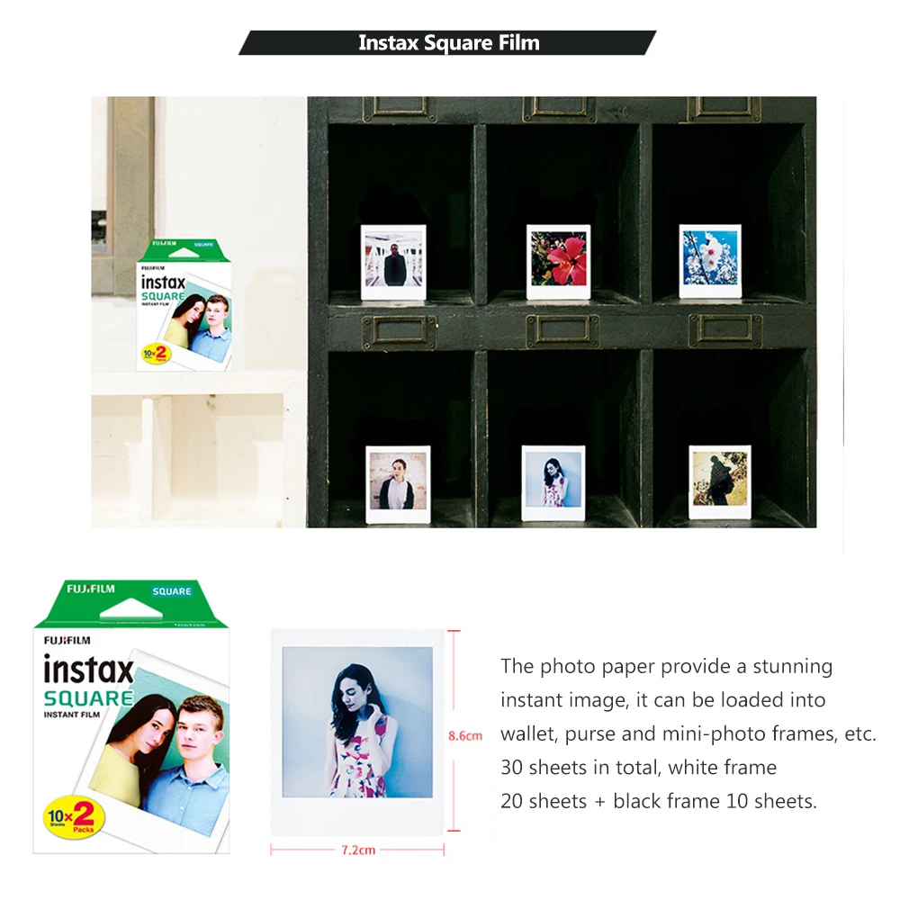 Белая пленка для Fuji Instax квадратный пленка для камеры Fujifilm комплект 30 шт. белого и черного цвета для моментальной фотографии Бумага для ЖК-дисплея с подсветкой Fujifilm Instax квадратный SQ20 SQ10/6 поделиться SP-3 кв принтер