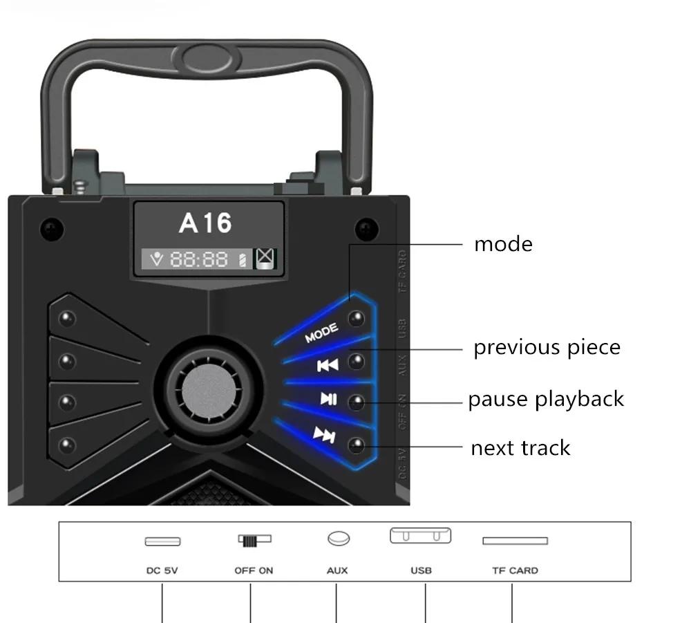 Функция: MP3 музыкальный плеер, fm-радио, TF карта, линейный вход, воспроизведение музыки USB, дистанционное управление