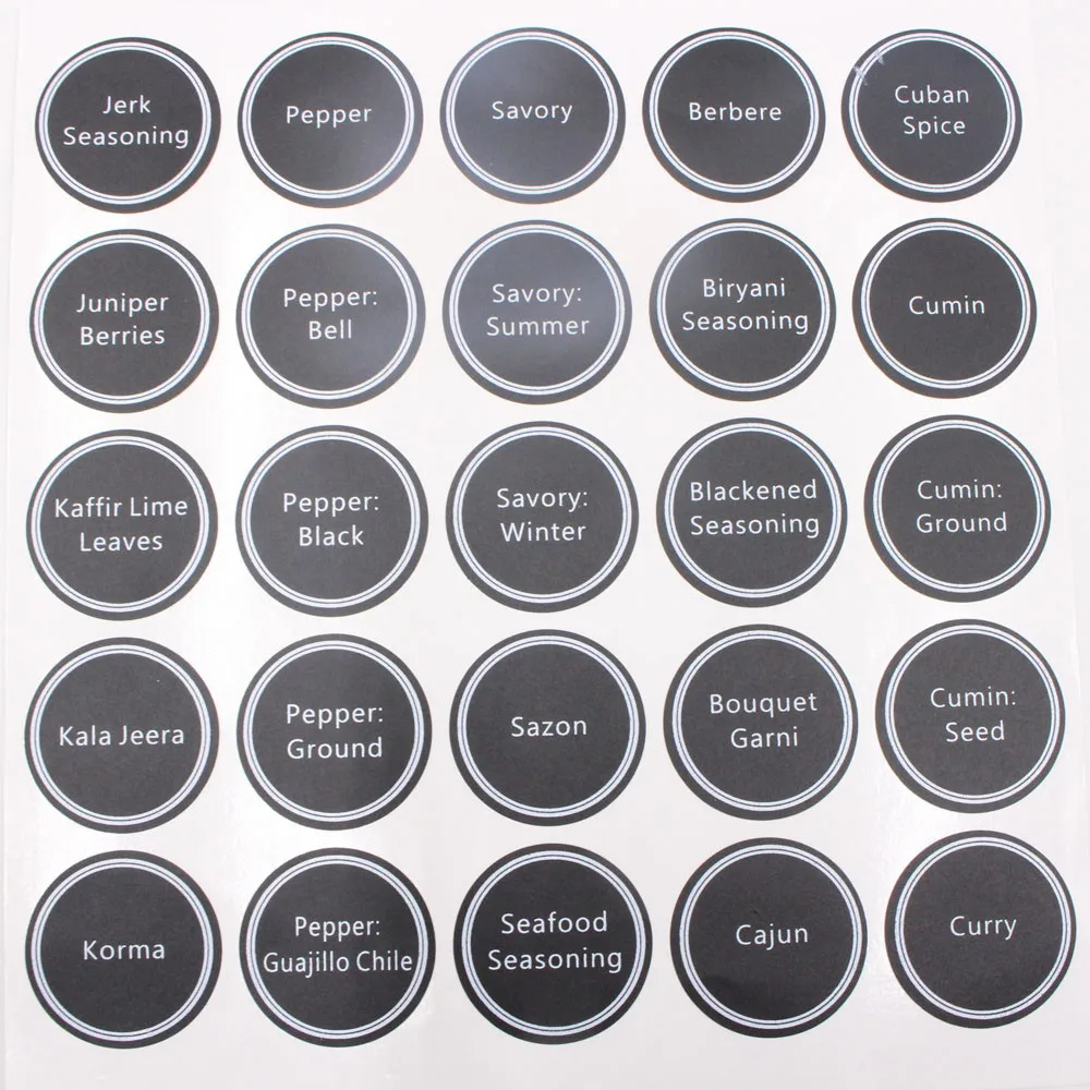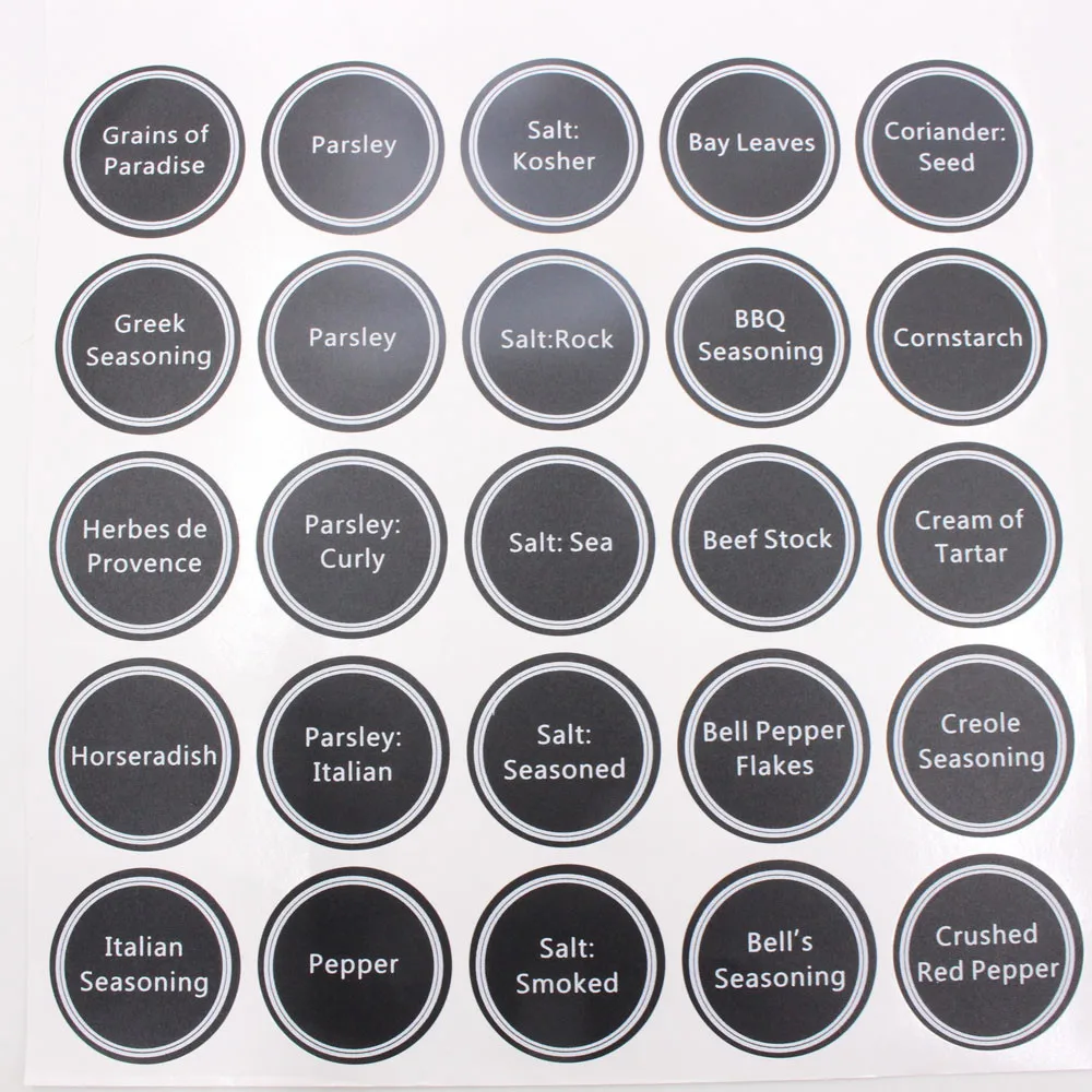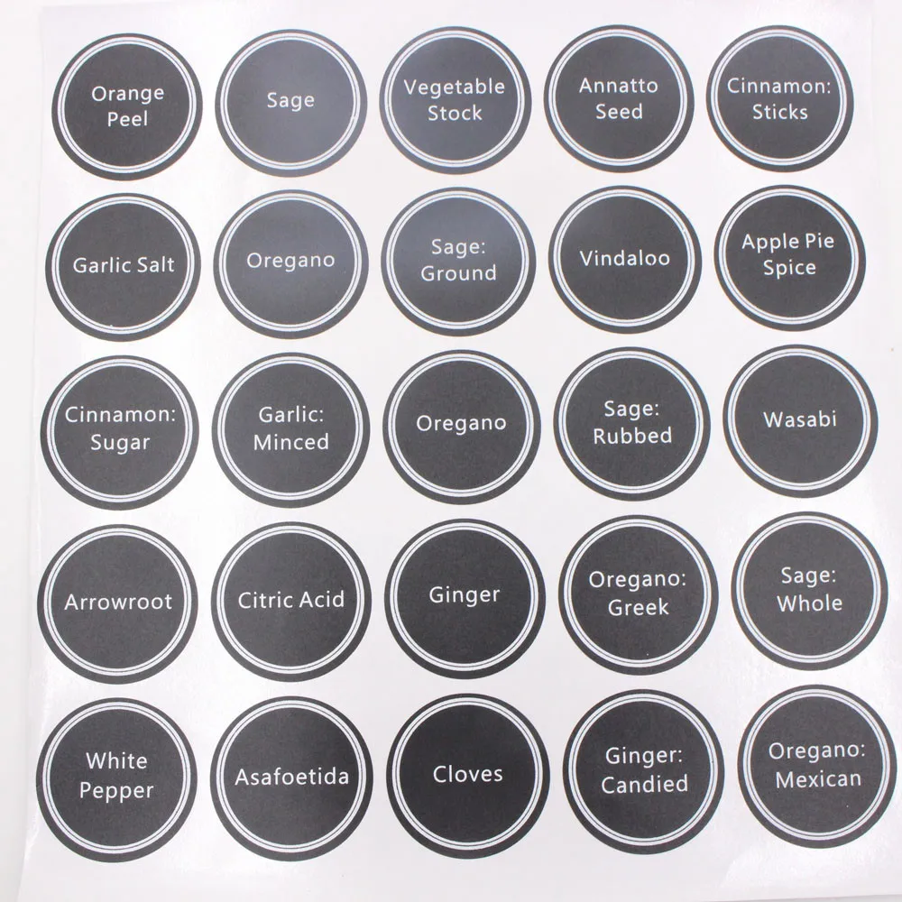 Круглая Этикетки для специй были разработаны для большинства банок для специй и этикеток для магазинов Они больше подходят для хранения банок и канистр больших размеров.