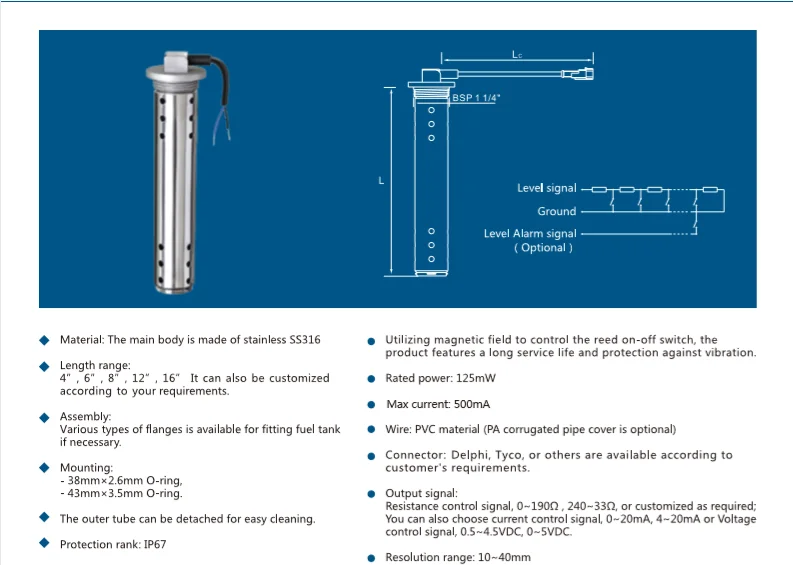 -Выходной сигнал: стандартный европейский 0-190 Ом
