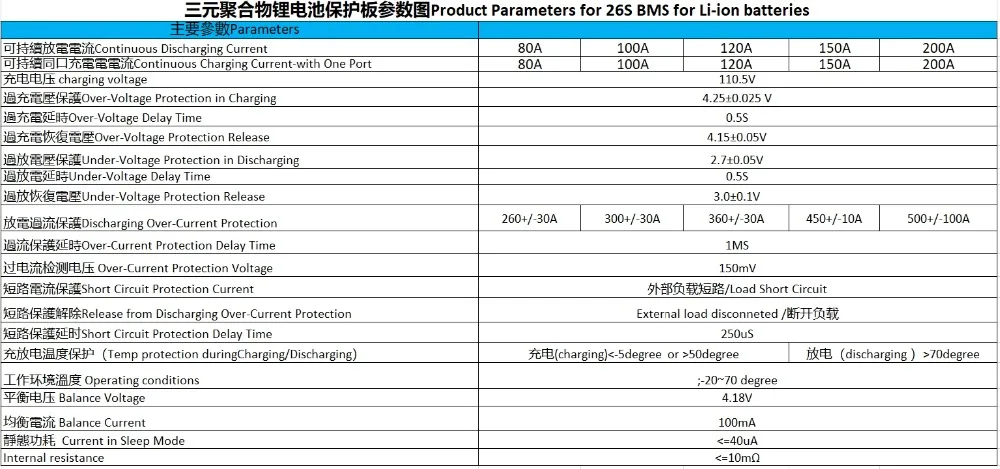 Отзывы о BMS 26 S bms 96V 100A 120A 150A 200A с балансом литий-ионных батарей 3 6 v/3 7 v подключенный к серии