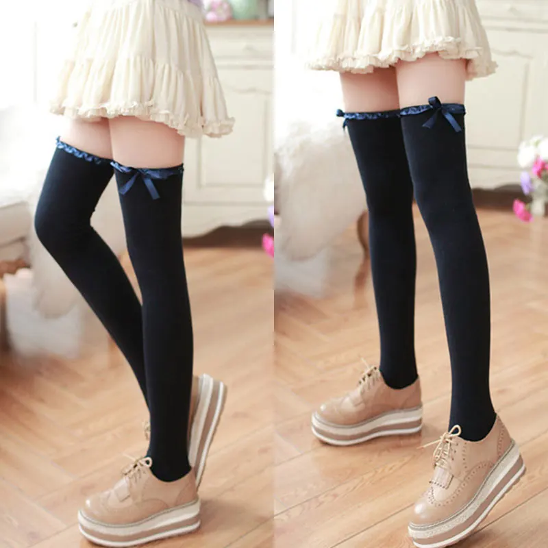 Для женщин с бантом, носки, гольфы, теплые высокие гетры длинные хлопковые чулки "medias" сексуальные чулки "medias"