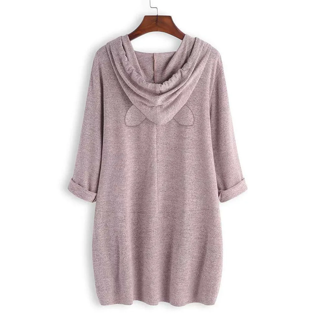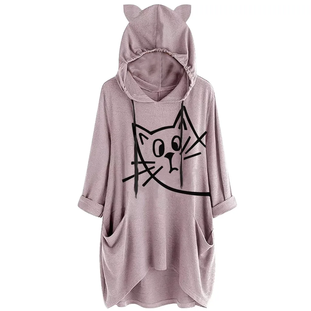 Женская Повседневная рубашка с капюшоном и длинными рукавами с принтом кошачьими ушками, необычная блузка