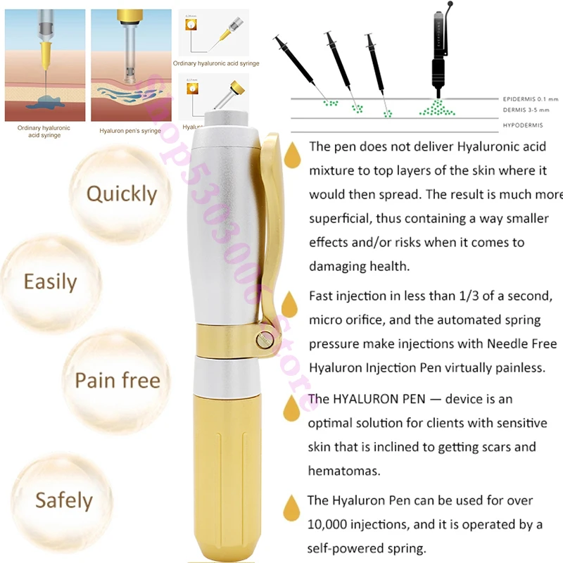 Что такое ручка гиалурона? Водная мезотерапия для инъекции гиалуроновой кислоты в кожу. Гиалуроновая кислота содержит влагу в 200-300 раз больше, чем тело. Так что делает кожу гладкой, мягкой, яркой и увлажненной после инъекции. Чтобы сохранить увлажненную кожу, дамы всегда выбирают различные средства по уходу за кожей. На самом деле, средства по уходу за кожей увлажняют только влагу на кутинах. Таким образом, перемазывание этих продуктов не может обеспечить увлажнение кожи. Как мы знаем, акне, морщинки и неэластичность проявляются, если коже не хватает влаги. Водная мезотерапия позволит решить все проблемы из-за отсутствия влаги, таких как кожа, пятна цвета, морщинки... И он подаст влагу для дермы. Поэтому водная мезотерапия хорошо работает на отбеливании, увлажнении и обновлении неэластичности. Технические характеристики: Название продукта: ручка для инъекций гиалурона Материал: нержавеющая сталь 304 Особенности: морщинка, подтяжка лица, подтяжка кожи и т. Д. Особенности: -Помогает уменьшить дефекты, морщины и следы. Укрепляющая и функции -Повышение уровня коллагена для создания новой и молодой кожи, поэтому осуществите омоложение кожи. -Усиливают кожу, восстанавливают эластичность кожи, улучшают старение. -Может сделать Антивозрастные продукты входят в глубину кожи, не повреждая кожу, без побочного эффекта, безопасны в использовании. -Глубокое Пополнение и богатое питание, укрепляет кожу, чтобы впитать косметический продукт. -Он используется для более 10000 инъекций, и он управляется с помощью самодельной пружины. -Быстрая инъекция менее чем за 1/3 секунды, микро отверстие, и автоматизированное пружинное давление делают инъекции безопасными и безболезненными -Удалите меланин в теле, улучшите темную и желтую кожу, сделайте кожу яркой и белой. Водная мезотерапия для инъекции гиалуроновой кислоты в кожу. Гиалуроновая кислота содержит влагу в 200-300 раз больше, чем тело. Так что делает кожу гладкой, мягкой, яркой и увлажненной после инъекции. Чтобы сохранить увлажненную кожу, дамы всегда выбирают различные средства по уходу за кожей. На самом деле, средства по уходу за кожей увлажняют только влагу на кутинах. Таким образом, перемазывание этих продуктов не может обеспечить увлажнение кожи. Как мы знаем, акне, морщинки и неэластичность проявляются, если коже не хватает влаги. Водная мезотерапия позволит решить все проблемы из-за отсутствия влаги, таких как кожа, пятна цвета, морщинки... И он подаст влагу для дермы. Поэтому водная мезотерапия хорошо работает на отбеливании, увлажнении и обновлении неэластичности