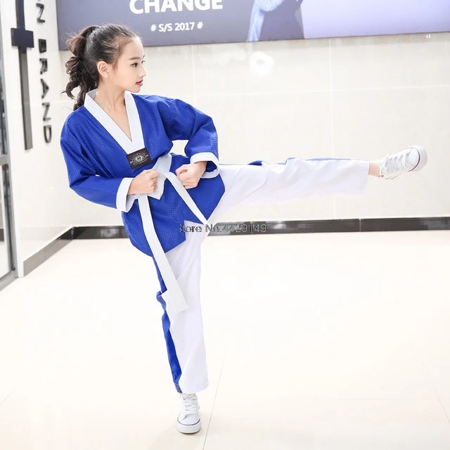 Профессиональная Синяя Униформа для тхэквондо, для детей и взрослых, унисекс, с длинным рукавом, одежда для тхэквондо, костюм, тренировочная одежда для тхэквондо