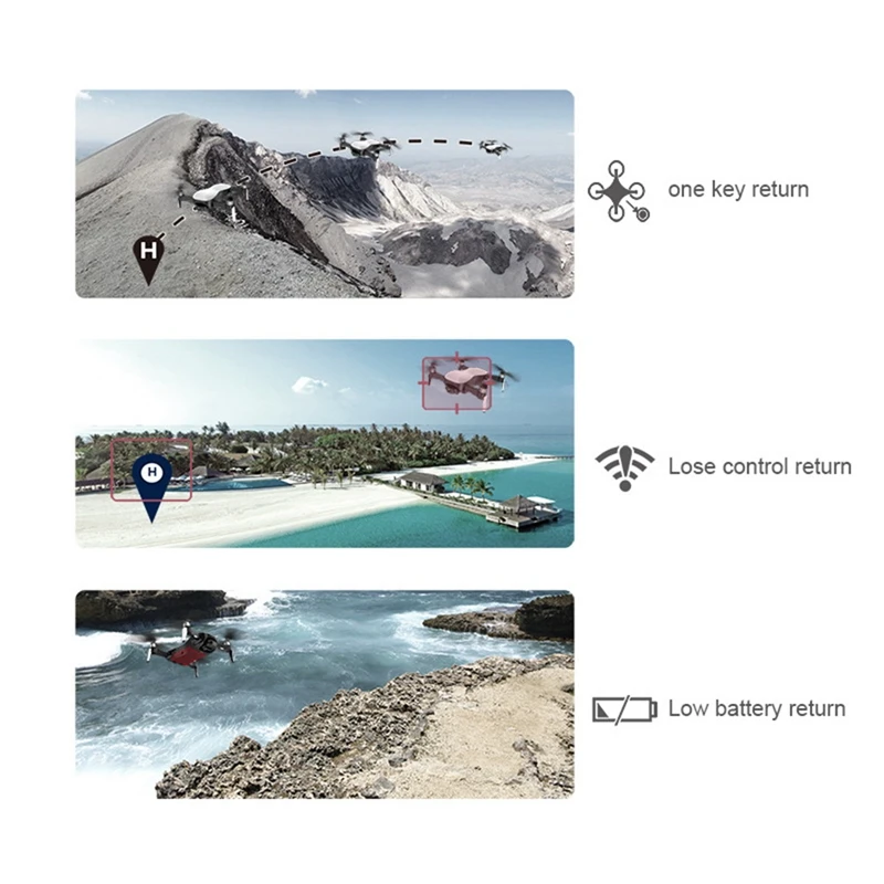 Дистанционное управление с камерой, регулировка угла поворота/наклона, размер и номер руля, взлет в одно касание, посадка в одно касание, Безголовый режим, возврат одной кнопкой, неконтролируемый возврат