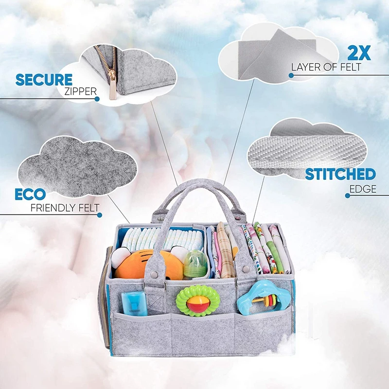 Благодаря двойному слою войлока для стабильности и съемным ручкам для максимальной универсальности, эта корзина для малышей Легко переносит вес всего, что входит в органайзер для пеленания, от подгузников и салфеток до детской косметики и многого другого.
