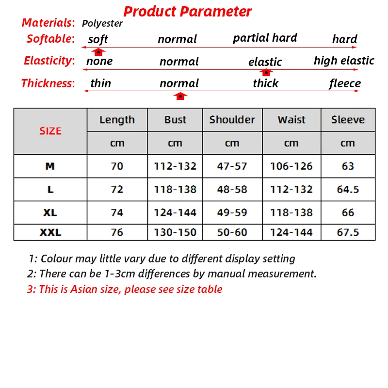 - Размеры: Размер M-XXL, пожалуйста, проверьте таблицу размеров перед заказом