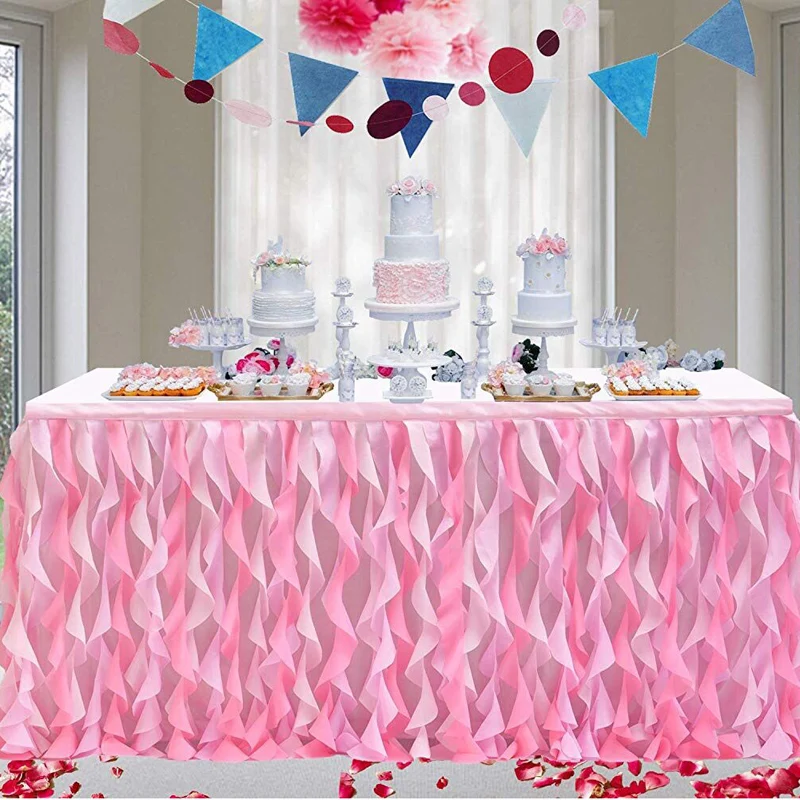 Отзывы о Розовая волнистая Тюлевая юбка ручной работы для стола Свадебный десерт
