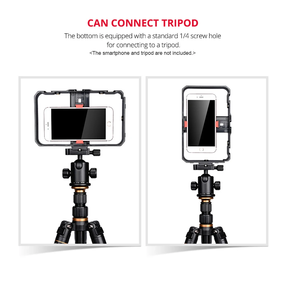 С одним стандартным 1/4 дюймовым отверстием для винта в нижней части, вы можете установить установку смартфона на штатив или другой кронштейн для более стабильной записи видео.