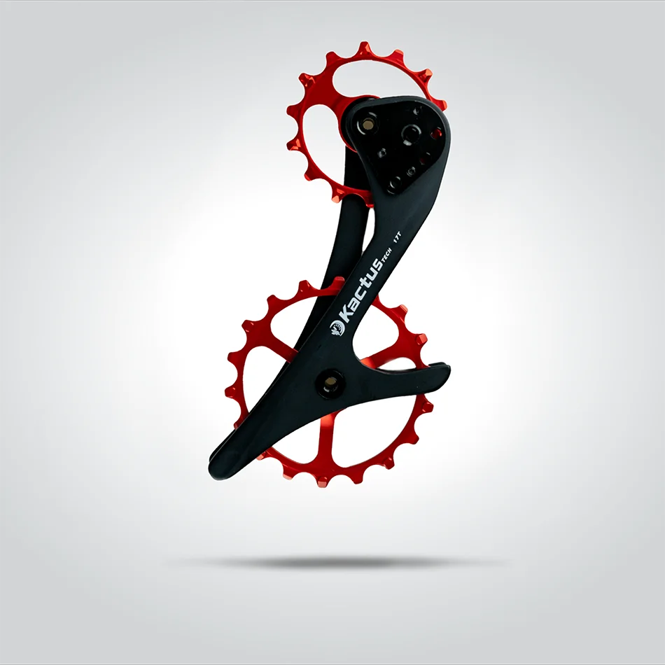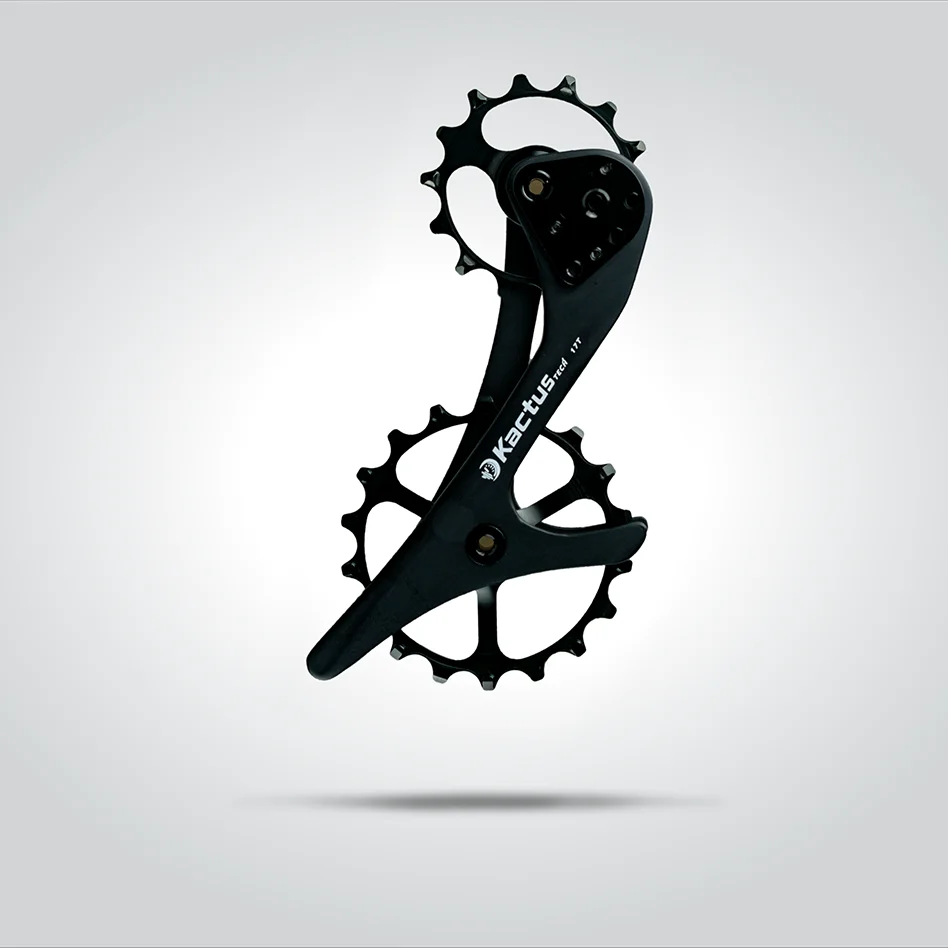 Для серии Shimano MTB, верхний шкив реализует оптимизированную конструкцию 14t lotus, с более сложным углом кривой и формой зуба, предотвращая аномальное движение цепи во время переключения, которое обычно находится в модификациях расширения кассеты, А именно: 46T до 50T, что приводит к понижению шума и трению и более быстрому плавному переключению.