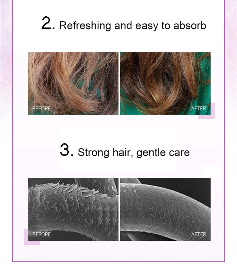 Добавляет фиолетовое розовое масло для восстановления волосяных волос и продлевает срок службы волос.