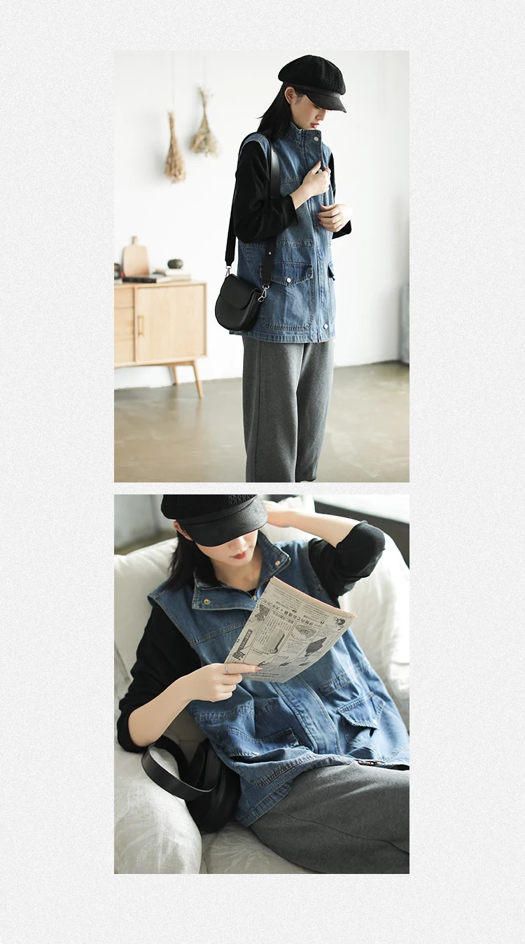 Отзывы о Женский джинсовый жилет Johnature свободный однотонный кардиган без рукавов осень 2020