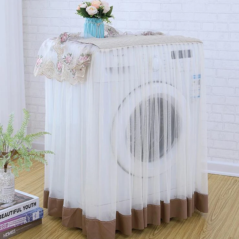 Кружевная плиссированная Цветочная стиральная машина защита от пыли Передняя прочная мягкая домашняя кружевная Защитная крышка для стиральной машины защита от пыли Описание: