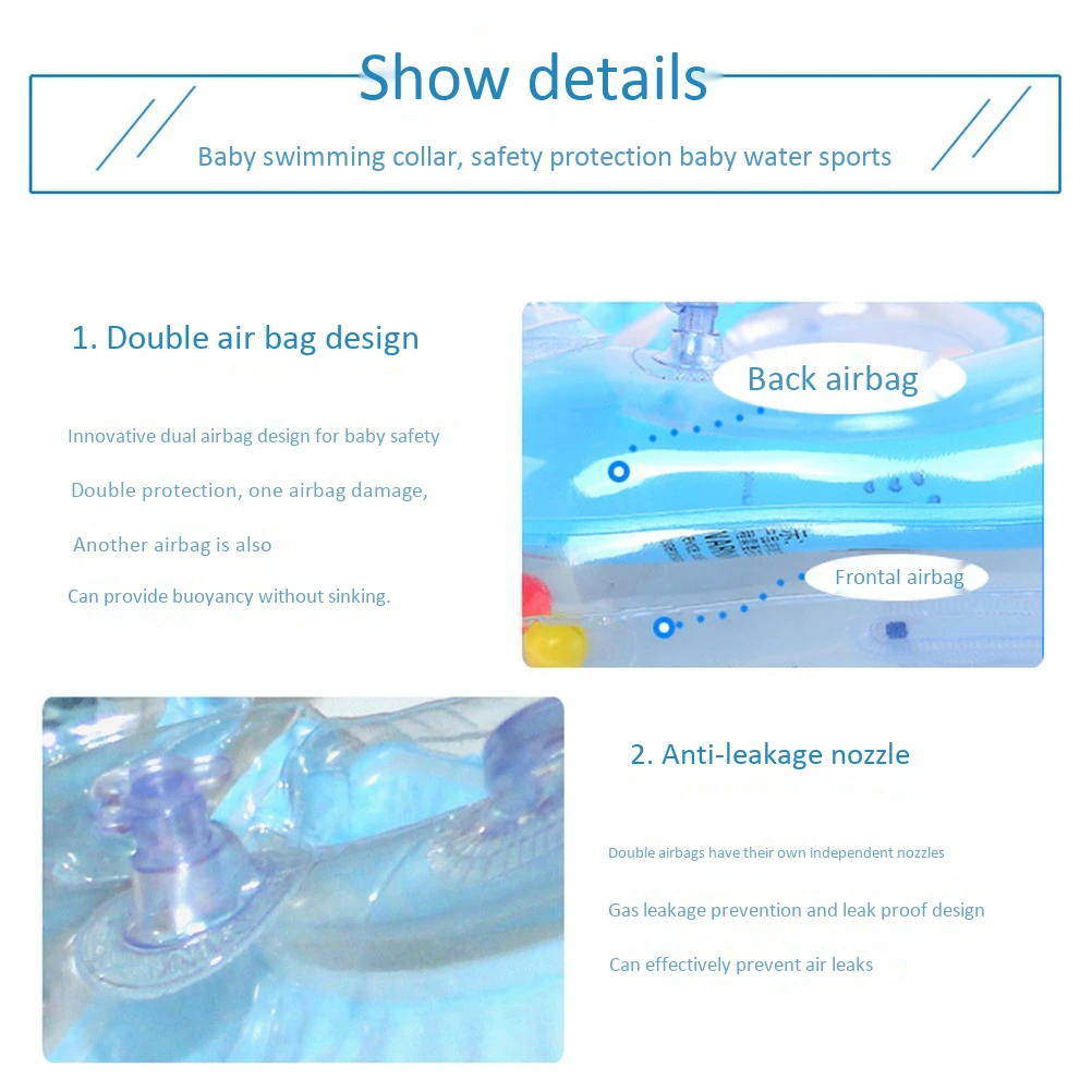 Для плавательного кольца используется двойной предохранительный замок, регулируется свободно или туго, дает вашему ребенку больше чувства безопасности и комфорта.