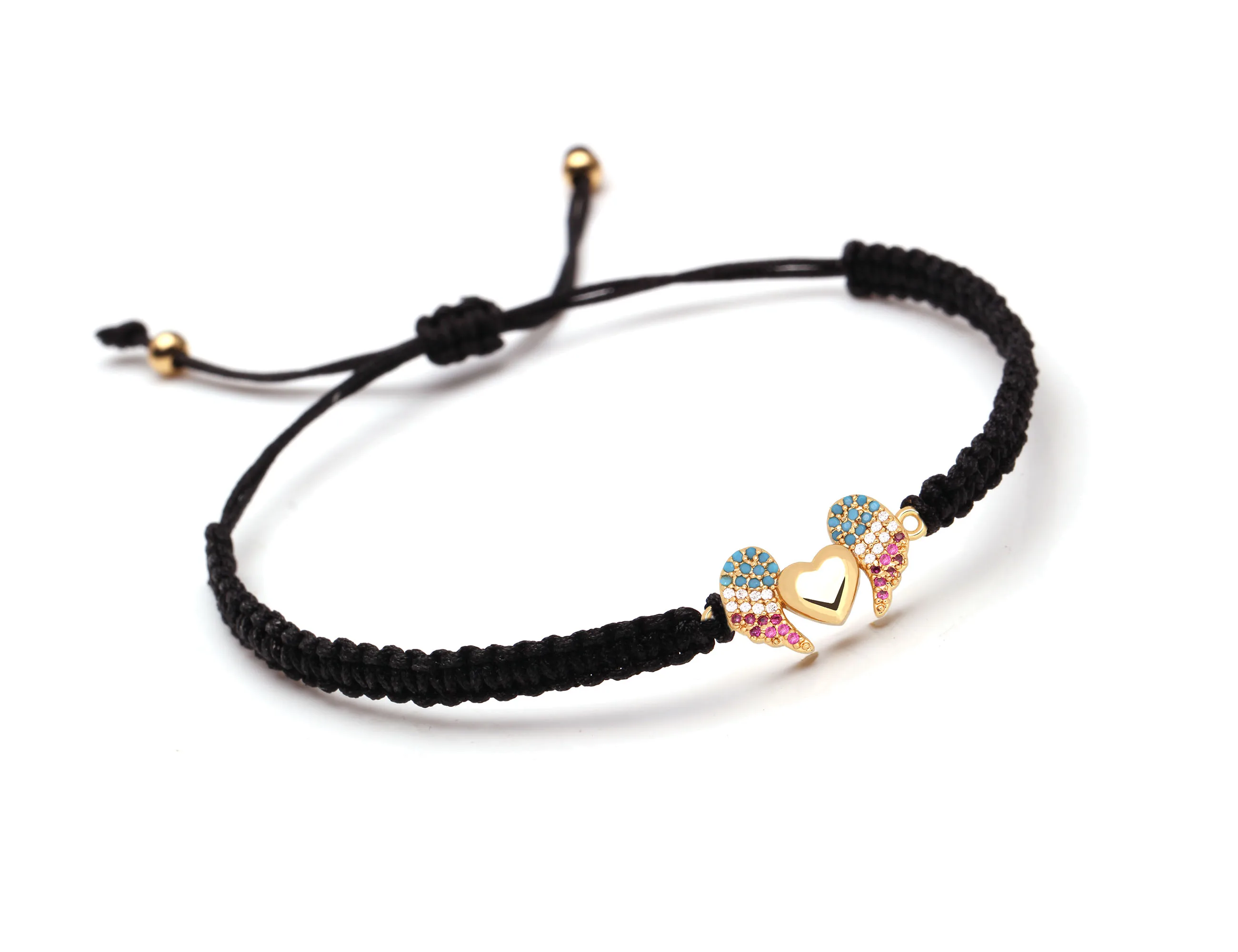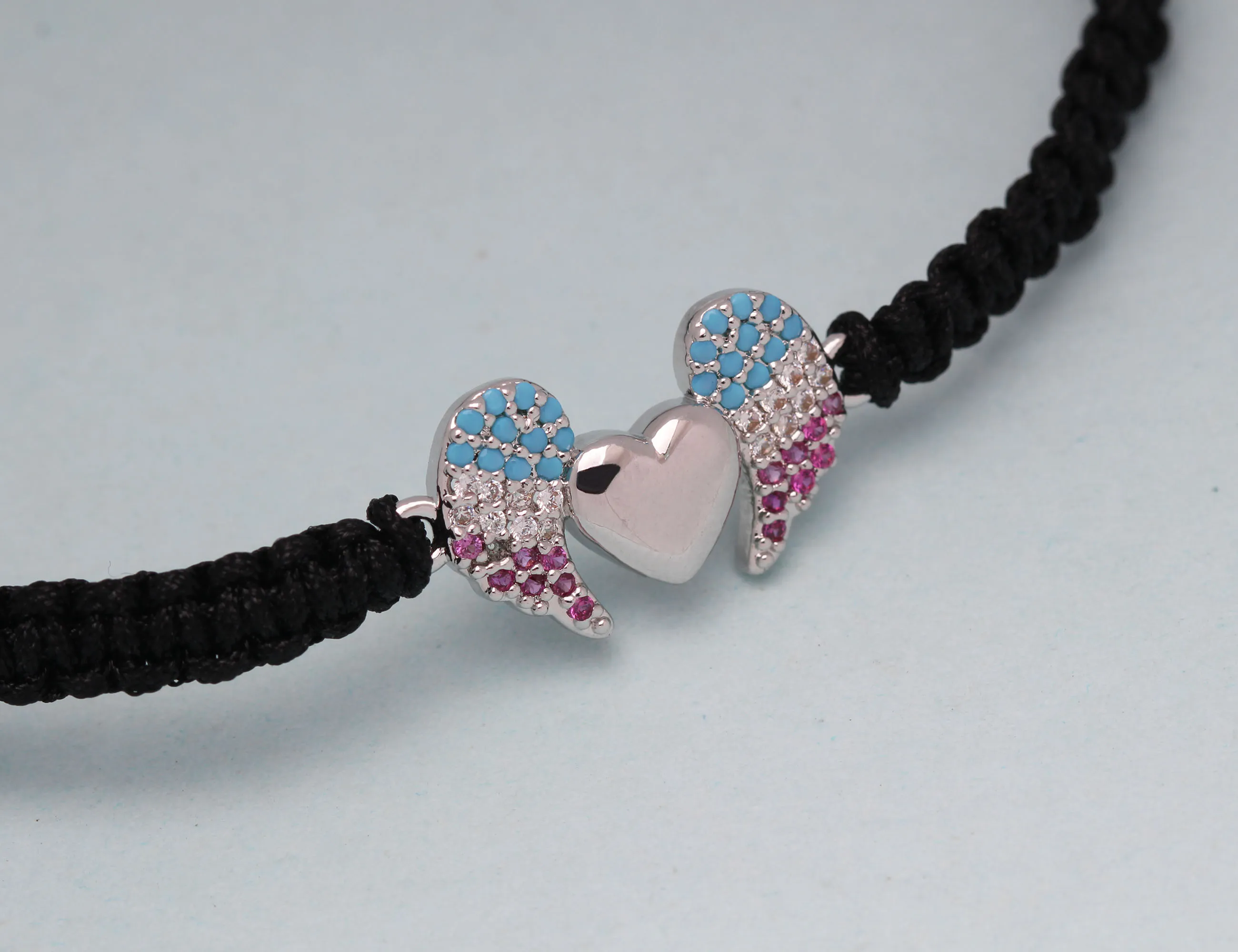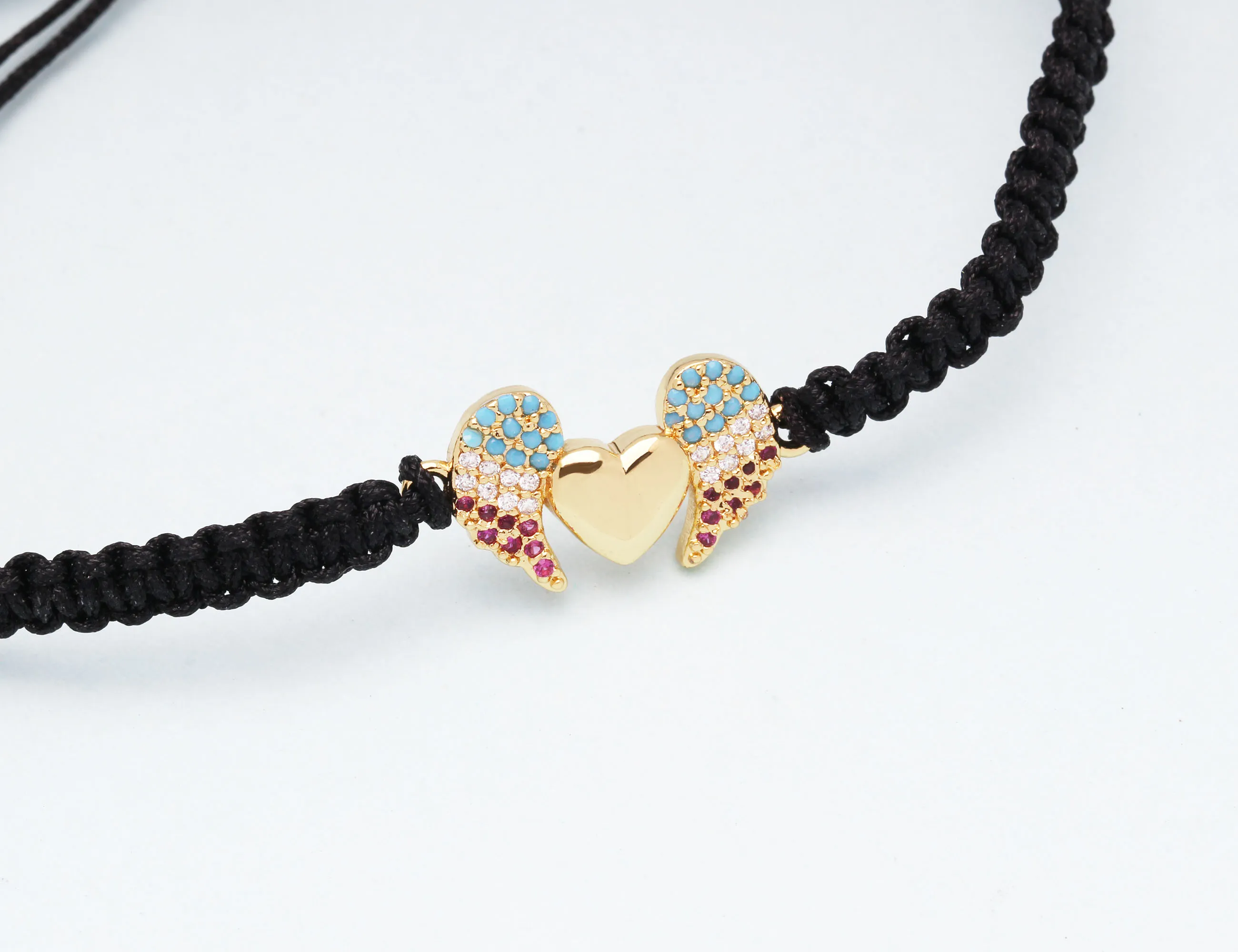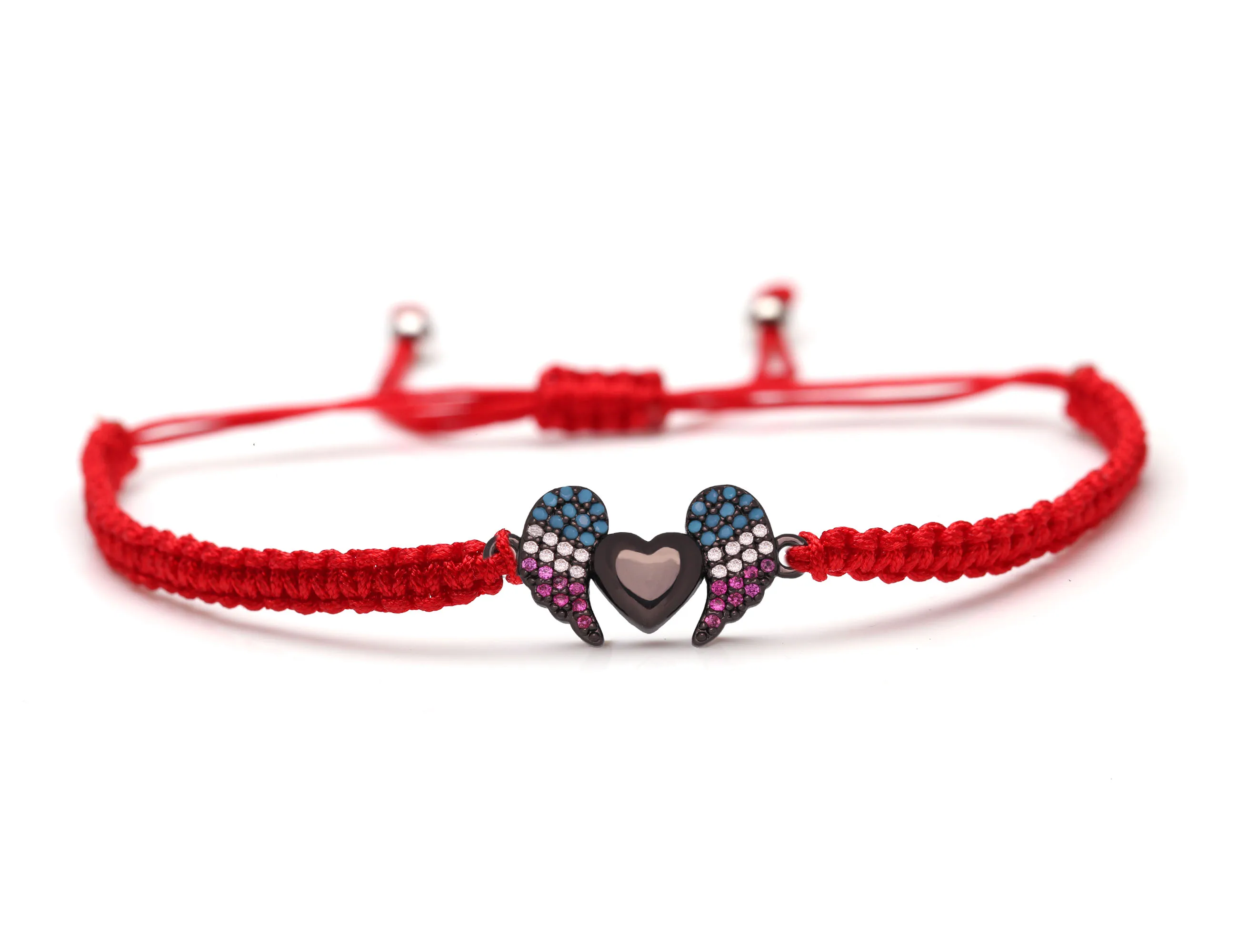 Женский и мужской медный браслет с подвеской в виде крыльев Ангела и сердца с фианитом, белая, синяя, фиолетовая бижутерия с макраме, 2019