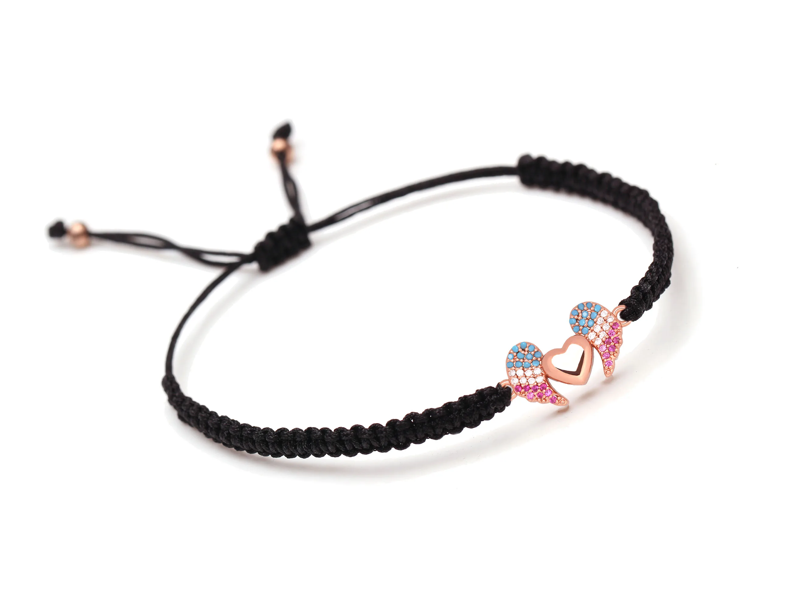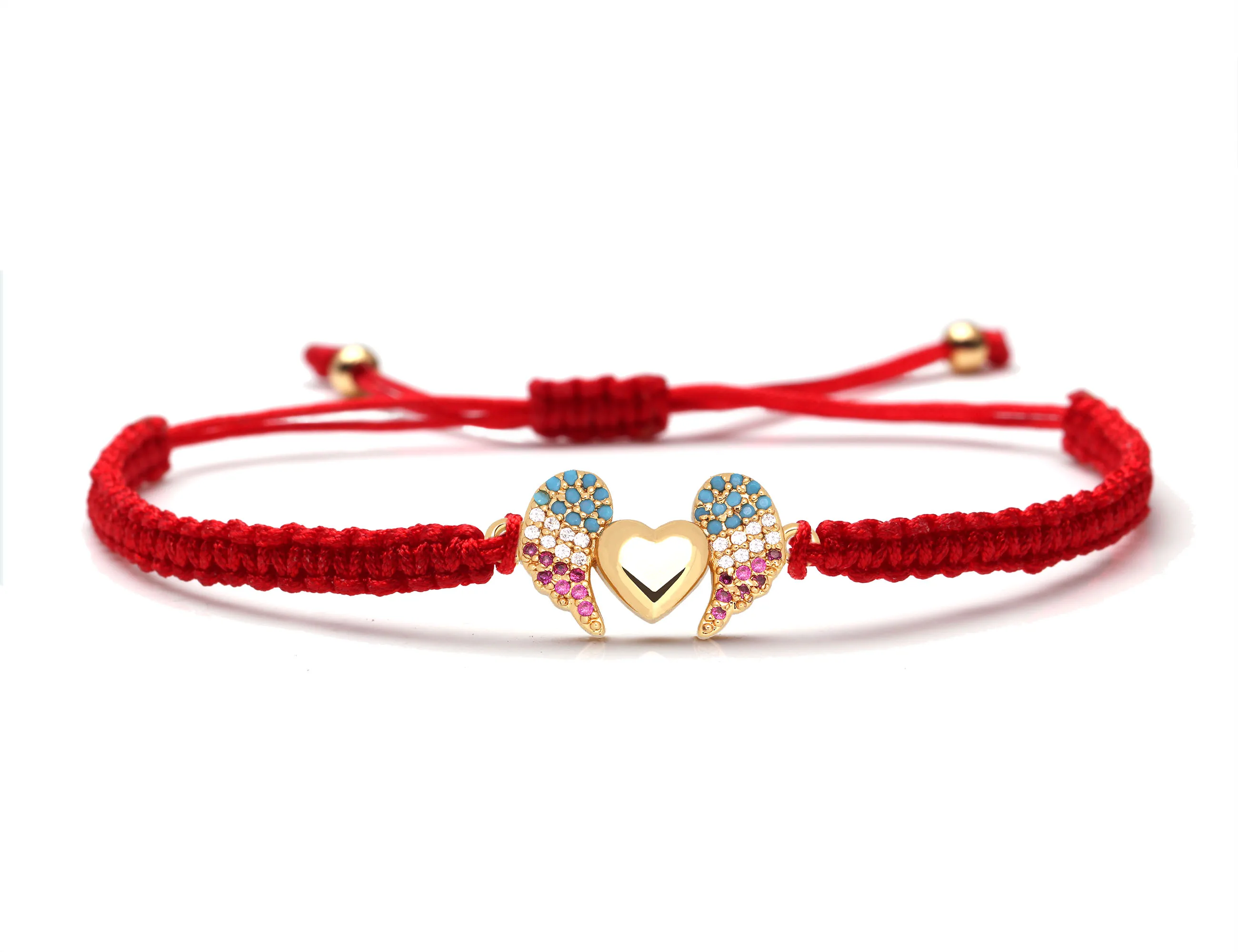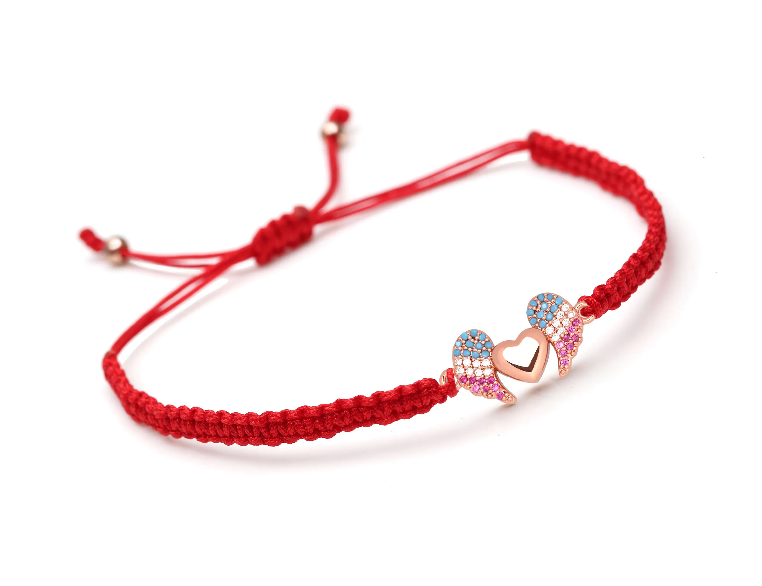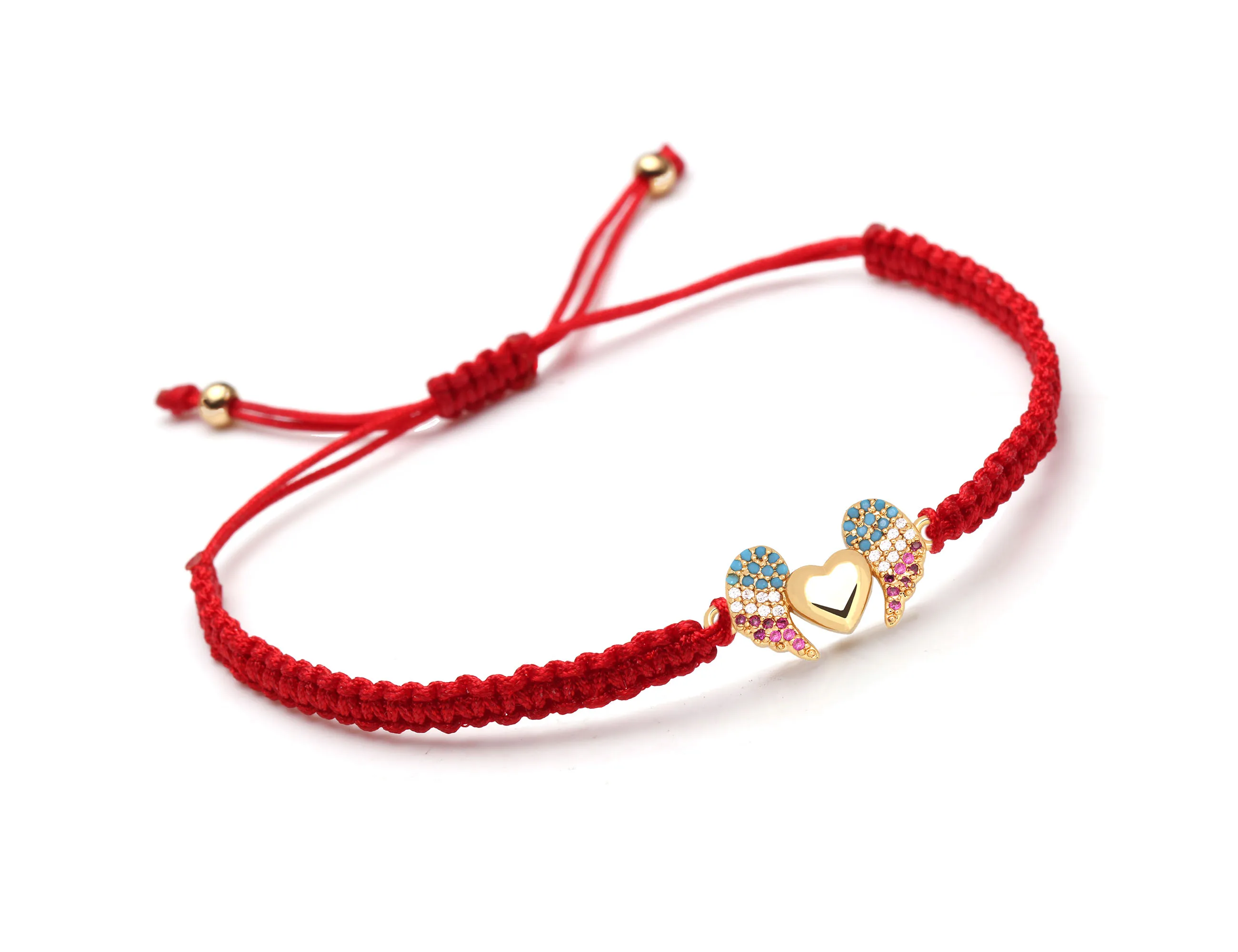 Женский и мужской медный браслет с подвеской в виде крыльев Ангела и сердца с фианитом, белая, синяя, фиолетовая бижутерия с макраме, 2019