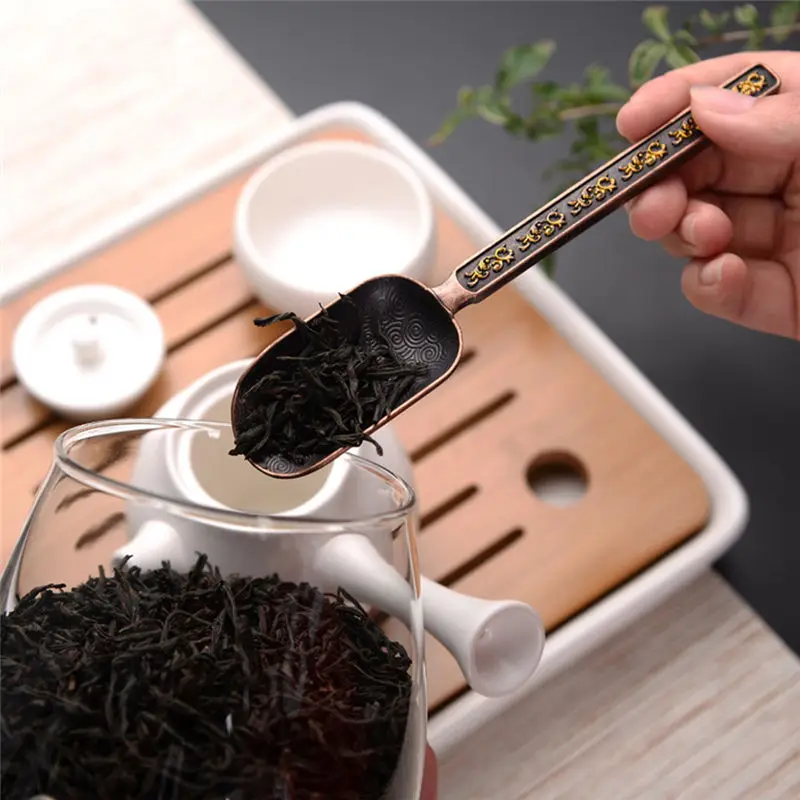 Чайная ложка из сплава с длинной ручкой, Золотая ложка, чайная ложка, декоративный держатель для чайных листьев для китайского кунг-фу, чайные принадлежности, инструменты