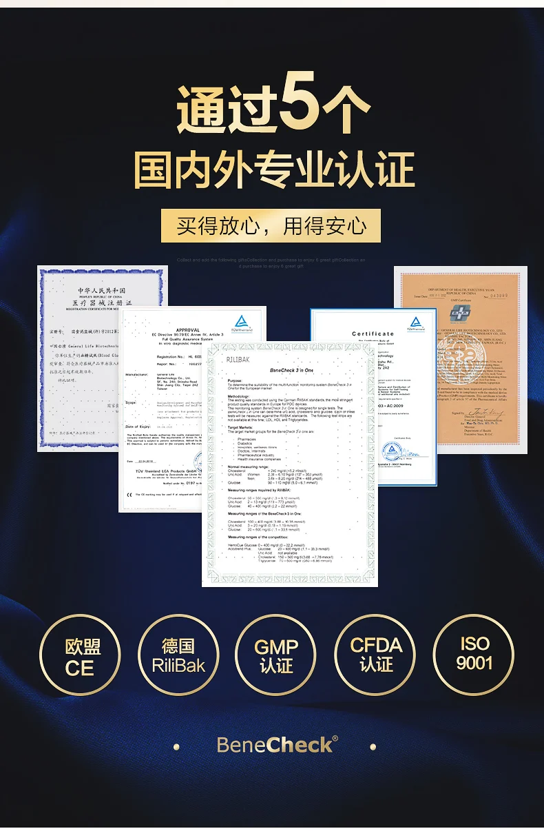 【Наименование изделия】 Общее название: тест-полоска для определения уровня глюкозы в крови Название на английском языке: тест-полоска для определения уровня глюкозы в крови [Модель Технические характеристики] 25 штук/бутылка, 2 бутылки/коробка. 25 штук/бутылка, 1 бутылка/коробка. 【Expected usage】 Этот продукт используется для количественного определения концентрации глюкозы в цельной крови капиллярных кровеносных сосудов на концах пальцев in vitro. Эта тест-полоска глюкозы в крови подходит только для анализатора глюкозы в крови Baijie, который может точно измерить концентрацию глюкозы в всей крови. Когда передний конец тест-полоски глюкозы в крови касается всей крови на кончике пальца (предварительно пульсируйте кончик пальца, чтобы получить около 1-1,5 микролитров цельной крови), вся кровь будет быстро поглощена в реакционной зоне тест-полоски, время теста составляет около 10 секунд, в анализаторе глюкозы в крови Результаты теста отображаются на экране. Метод оксидазы глюкозы был использован для количественного измерения концентрации глюкозы в всей крови капиллярных кровеносных сосудов. Результаты теста используются только для контроля уровня глюкозы в крови и не могут использоваться в качестве основы для корректировки лекарственных средств. [Принцип испытания] Концентрацию глюкозы в цельной крови проверяют по принципу электрохимического биосиндирования; принцип тестирования использует глюкозу в крови для реакции со специальным электрохимическим веществом на тестовой бумаге для получения небольшого количества тока реакции, И интенсивность тока зависит от концентрации глюкозы в крови. И изменения. Ток реакции измеряется счетчиком глюкозы в крови Baijie в результате измерения. [Основные компоненты] 1, каждый кусок тест-полоски глюкозы в крови содержит Оксидаза глюкозы: ≥ 5 единиц (аспергиллус Нигер) Другие ингредиенты: <2 г 2. Перед использованием новой тест-полоски глюкозы в крови, анализатор глюкозы в крови должен быть кодирован в первую очередь и не должен смешиваться. 【Testing method】 Тест-бумага для определения уровня глюкозы в крови метод кодирования: Перед упаковкой каждой новой тест-полоски глюкозы в крови, анализатор глюкозы в крови Baijie должен быть кодирован в первую очередь. Этапы кодирования следующие: 1. Вставьте кодовую карту в тестовую часть счетчика, и окно прибора отобразит код тестовой бумаги. 2. Проверьте номер кода, указанный на тестовой бумажной этикетке бутылки, и код и номер тестового режима на кодовой карте одинаковы. Способ тестирования: 1. Удалите тест-полоску глюкозы в крови из тест-полоски и Немедленно закройте тест-полоску. 2. Определите тестовый режим перед каждым измерением. Единица измерения анализатора глюкозы в крови такая же, как и ожидаемое измерение. Единица измерения доступна в двух миллиграммах на 100 миллилитров или millimoles на литр (мг/дл или ммоль/л). Метод настройки см. В руководстве пользователя. 3. Поместите тест-бумагу на глюкозу в анализатор глюкозы в крови, и анализатор глюкозы в крови начнет автоматически. Если нет команды в течение 2 минут, анализатор глюкозы в крови автоматически отключится, пожалуйста, выньте тестовую бумагу и повторно вставьте ее. 4. Убедитесь, что код анализатора глюкозы в крови совпадает с кодом тестового флакона; Если он отличается, пожалуйста, следуйте шагу руководства по
