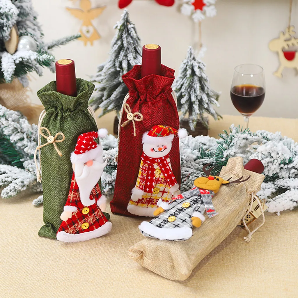 Отзывы о 2020 Christmas Red Wine Bottle Covers Bag Santa Clause Snowman Linen Champagne Party Home Decor 64P | Дом и сад