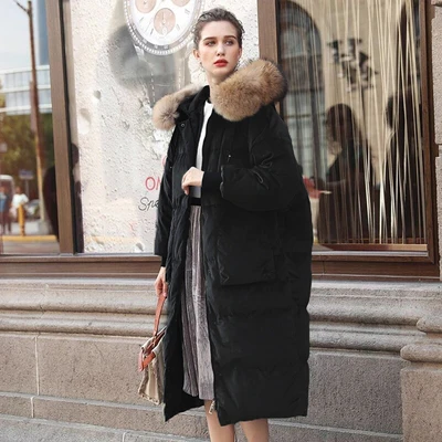 Отзывы о Женский пуховик с натуральным мехом свободный на белом утином пуху золотистым