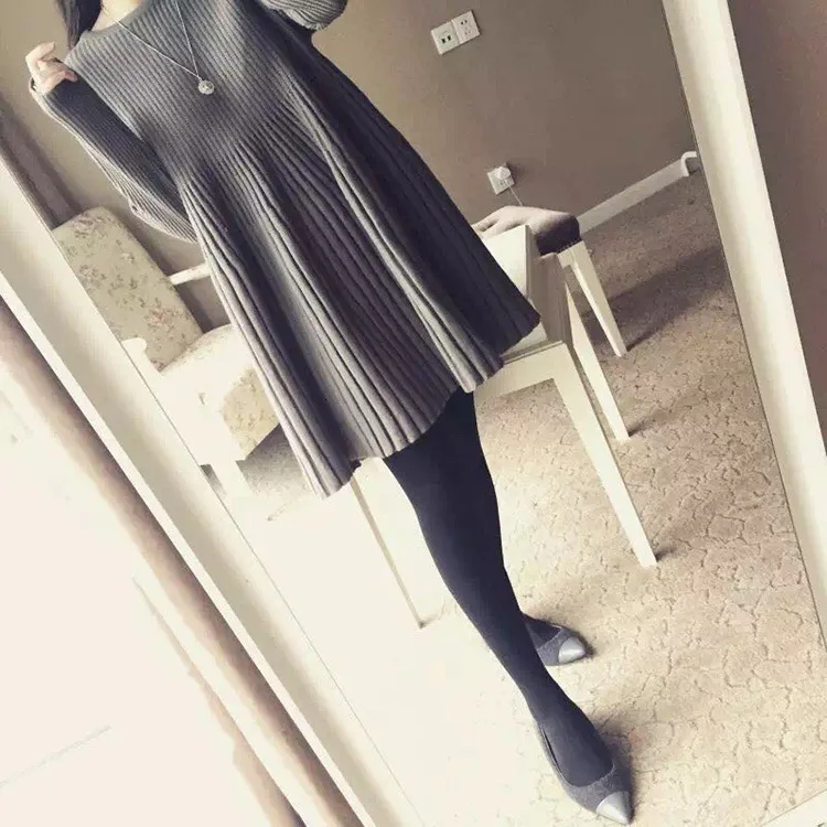 Отзывы о Зимнее однотонное вязаное длинное платье-топ для беременных шерстяное