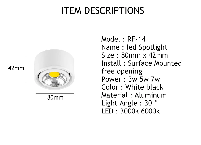 Отзывы о Креативные Круглые точечные светильники светодиодный алюминиевый прожектор для