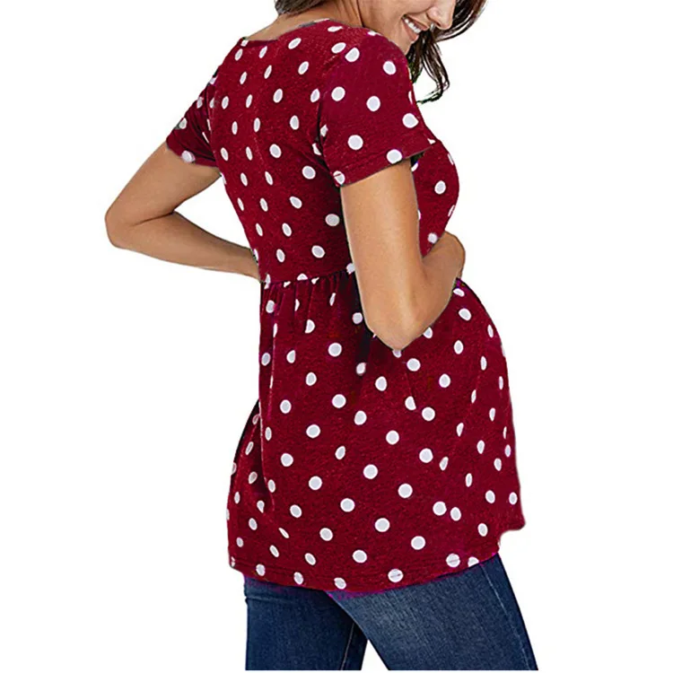 Отзывы о Летняя рубашка с короткими рукавами для беременных Лоскутная одежда в горошек