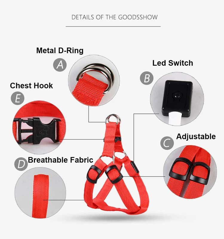 Шлейка для собак со светодиодсветильник кой для ночных прогулок и собак; Материал шлейки из ПЭТ: полиэстер + металл + пластик, Размер: S грудь 32-40 см; M грудь 38-50 см; L грудь 43-60 см; XL Грудь 55-67 см; 3 режима светильник Ки, медленная вспышка, быстрая вспышка светильник, запрос 4 батареек cr2032 (батарейки в комплект не входят); Дышащий дизайн позволяет вашему питомцу чувствовать себя комфортно, идеально подходит для жаркого лета; Подходит для маленьких, средних и больших собак: мопса, Йоркшира, таксы, бульдога, шнауцера, пуделя, бордюра колли, Лабрадора, далматина, боксера и т. д.