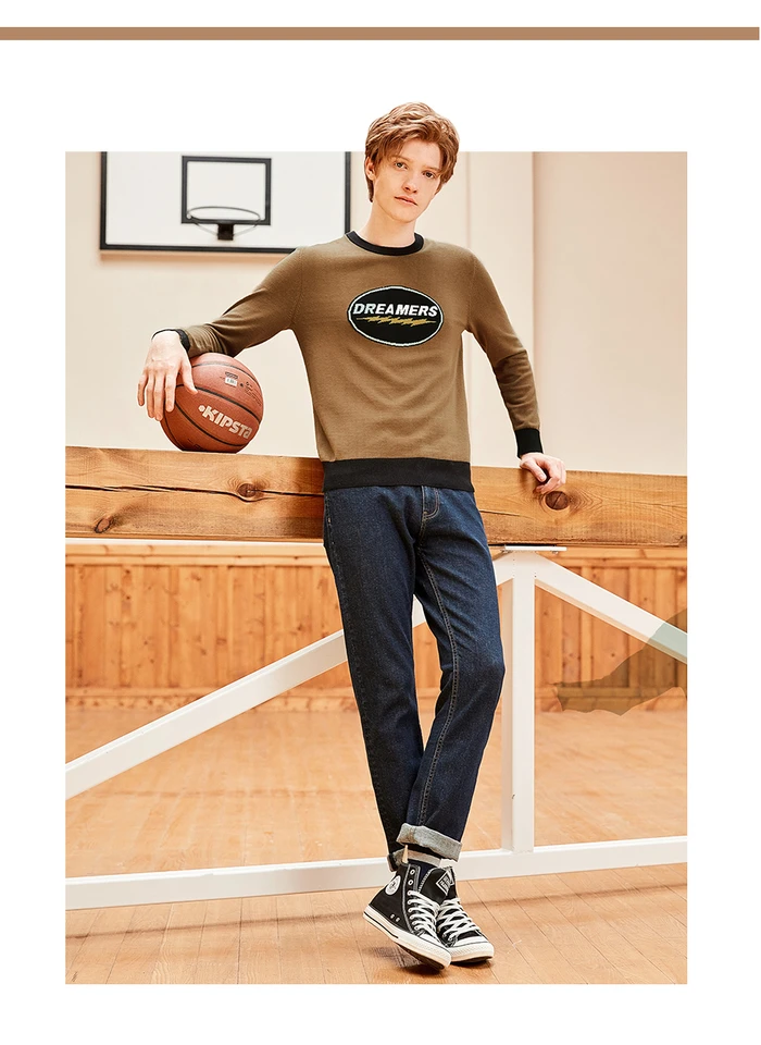 Отзывы о Мужской толстый свитер Giordano контрастный трикотажный пуловер с надписью и