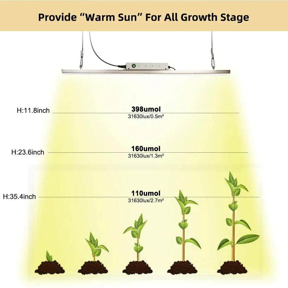 【Светодиодный светильник полного спектра 】:Полный спектр 380-780 нм, Высокое Номинальное значение, подходит для выращивания растений на всех этапах, специально разработан для цветения и плодоношения растений.