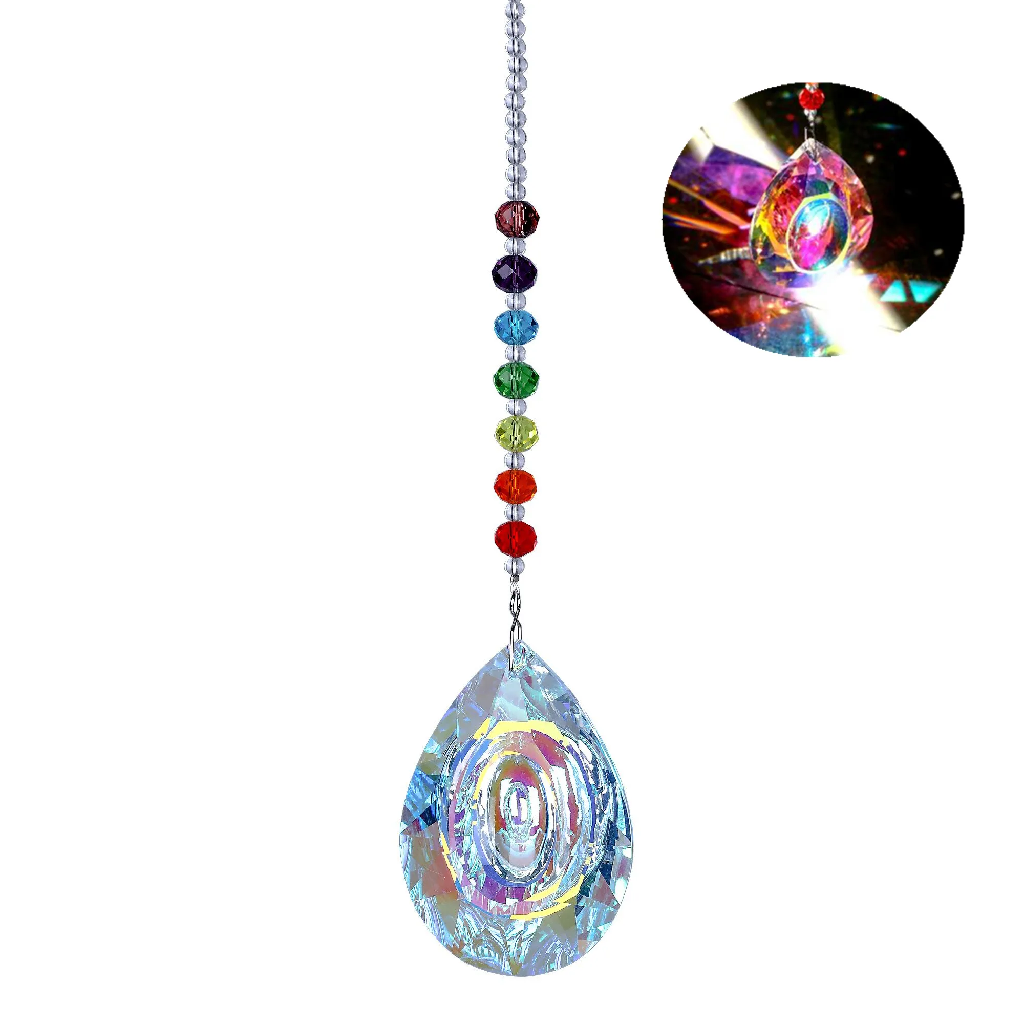 Название продукта: H & D чакра стеклянный кристалл 76 мм AB Цвет люстра Призма кулон Suncatcher Радуга производитель для окна, офиса, украшения сада