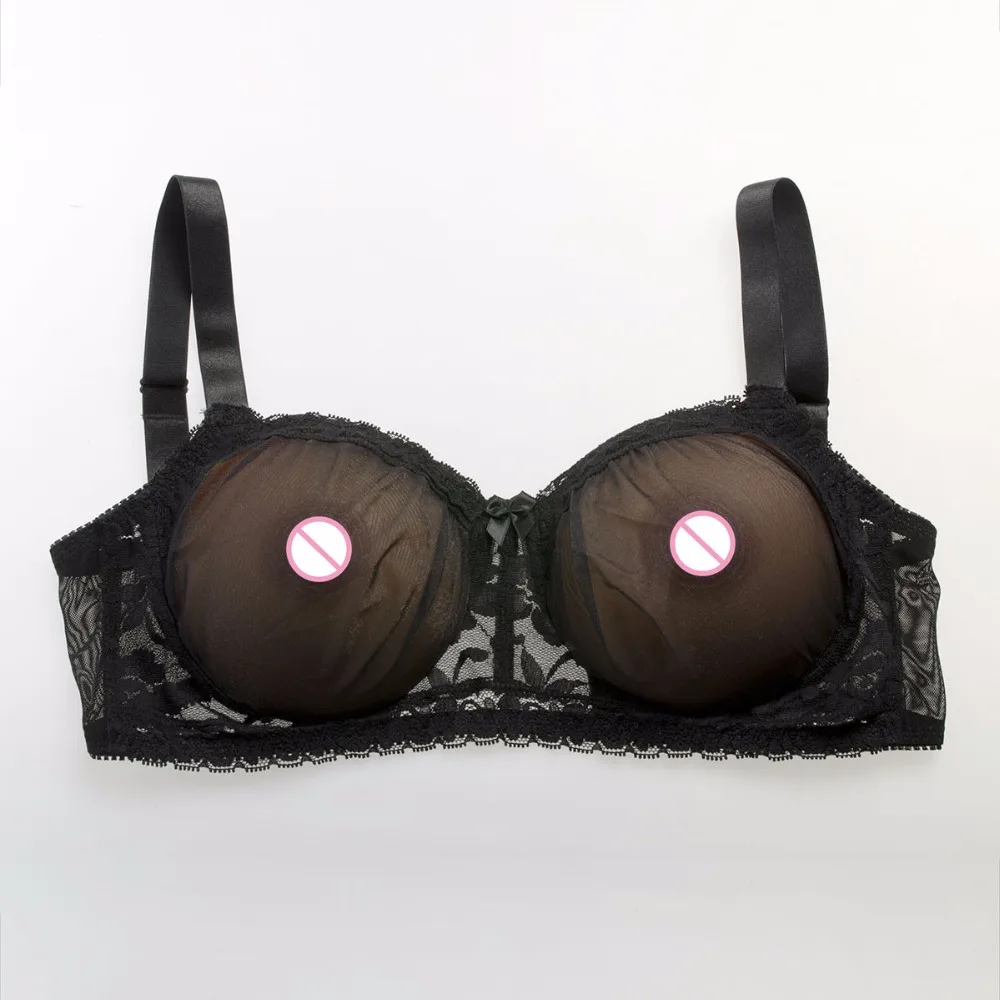 Отзывы о 600g/pair Crossdresser Bra Classic Round Boobs Set (Silicone Breast Form Brown+Sexy Transparent Lace Pocket Black) - купить по