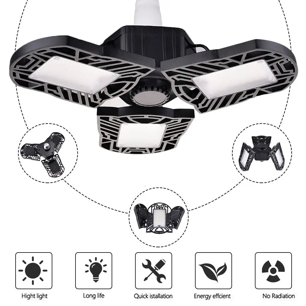 80W E27 Fold UFO LED Light 8000LM Three Light Garage Lamp High Bay Light Workshop Lighting Parking E26 Warehouse Lamp Lights