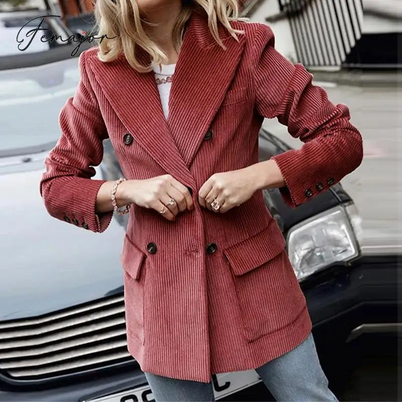 Отзывы о Femajor женский модный двубортный вельветовый Блейзер Куртки 2019 осень зима
