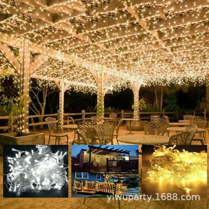 Светодиодные маленькие цветные фонари, гирлянда с фонариком, полная звезд, наружные водонепроницаемые, обесцвеченные, семь-цветное рождественнское дерево, наружные декоративные фонари