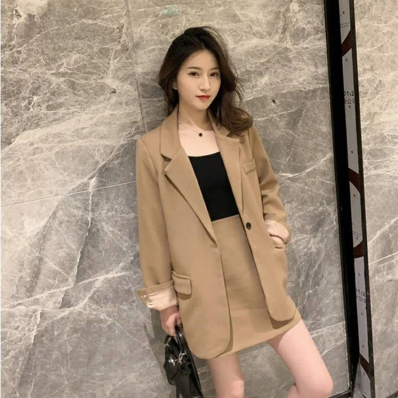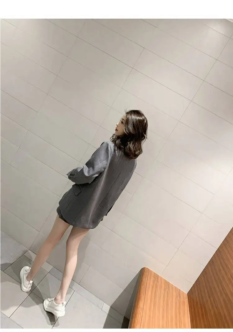 Отзывы о Корейский Серый Блейзер юбка костюм женский 2019 длинный рукав повседневный