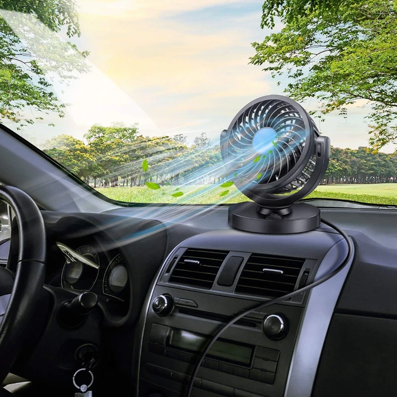 (Низкий уровень шума)-сильный ветер, но низкий уровень шума и поставляется с двумя клейкими наклейками, чтобы закрепить вентилятор на приборной панели или области подлокотника.