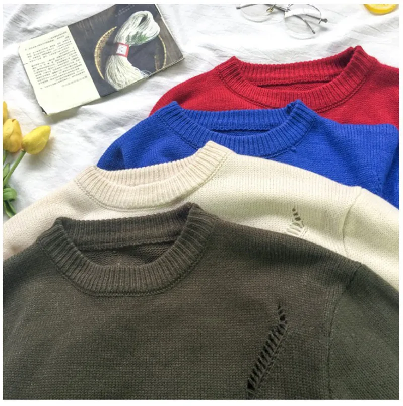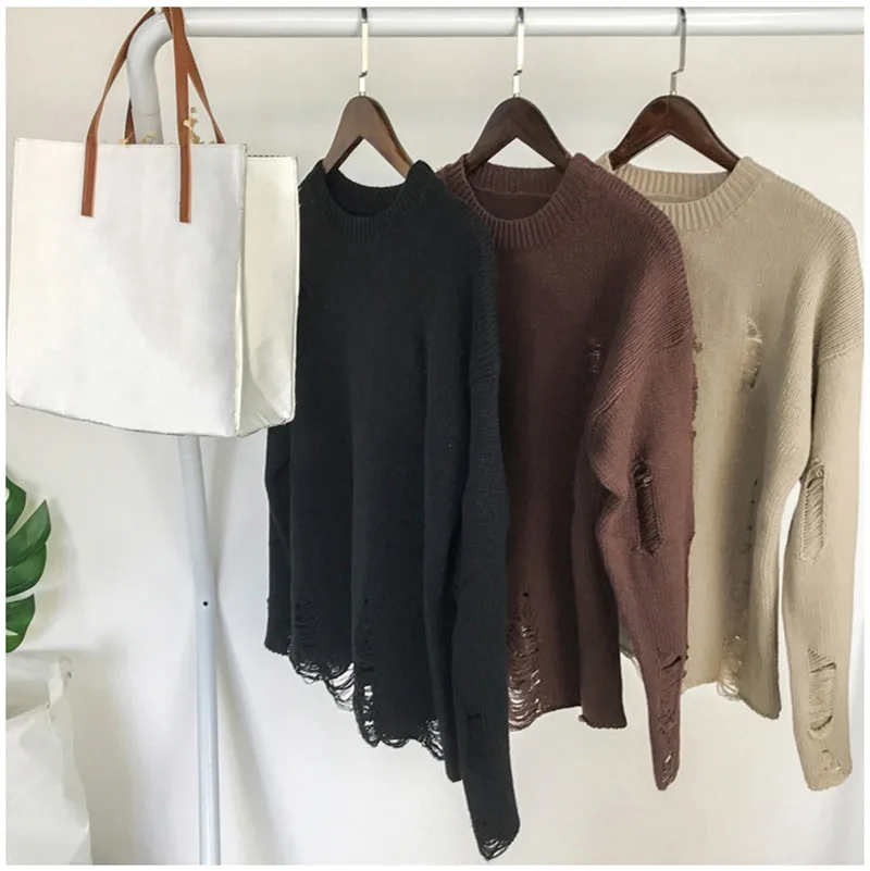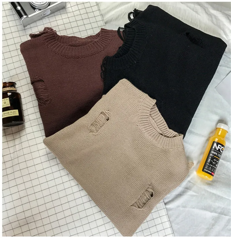 Отзывы о Мужской рваный Однотонный свитер для мужчин и женщин Harajuku корейский теплый