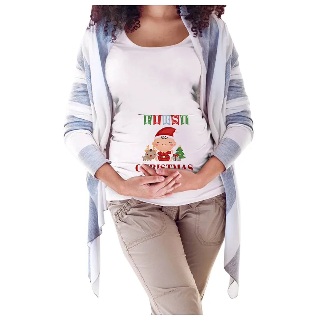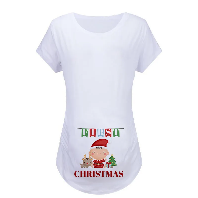 Женская рождественская футболка с коротким рукавом и круглым вырезом для беременных