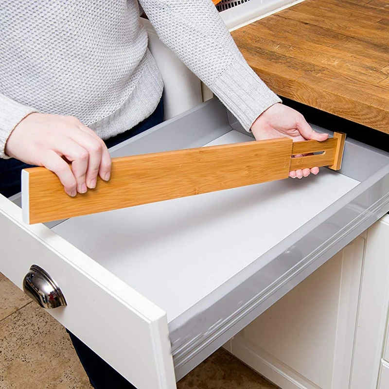 Eep ваши ящики, в любом месте: этот чистый бамбуковый деревянный разделитель для ящиков идеально подходит для любого декора, от усердных ящиков на кухне или мастерской до ванной комнаты до стола, регулируемые перегородки ящиков для каждой комнаты дома или бизнеса.