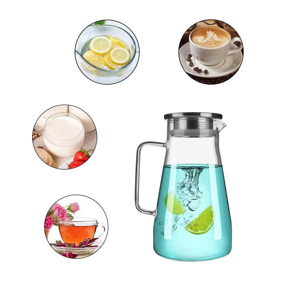 50 унций стеклянный кувшин с крышкой из нержавеющей стали, кувшин для горячей и холодной воды, сок и чай со льдом, стеклянный кувшин для воды, холодильник