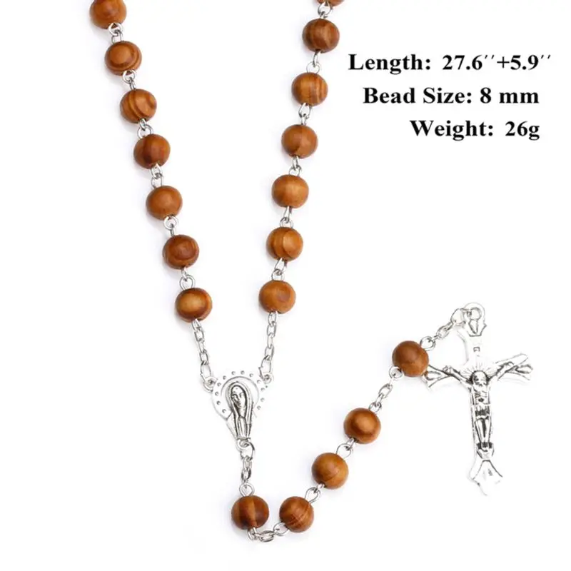 Отзывы о Религиозное ожерелье из деревянных бусин крест с римскими розарами ручной