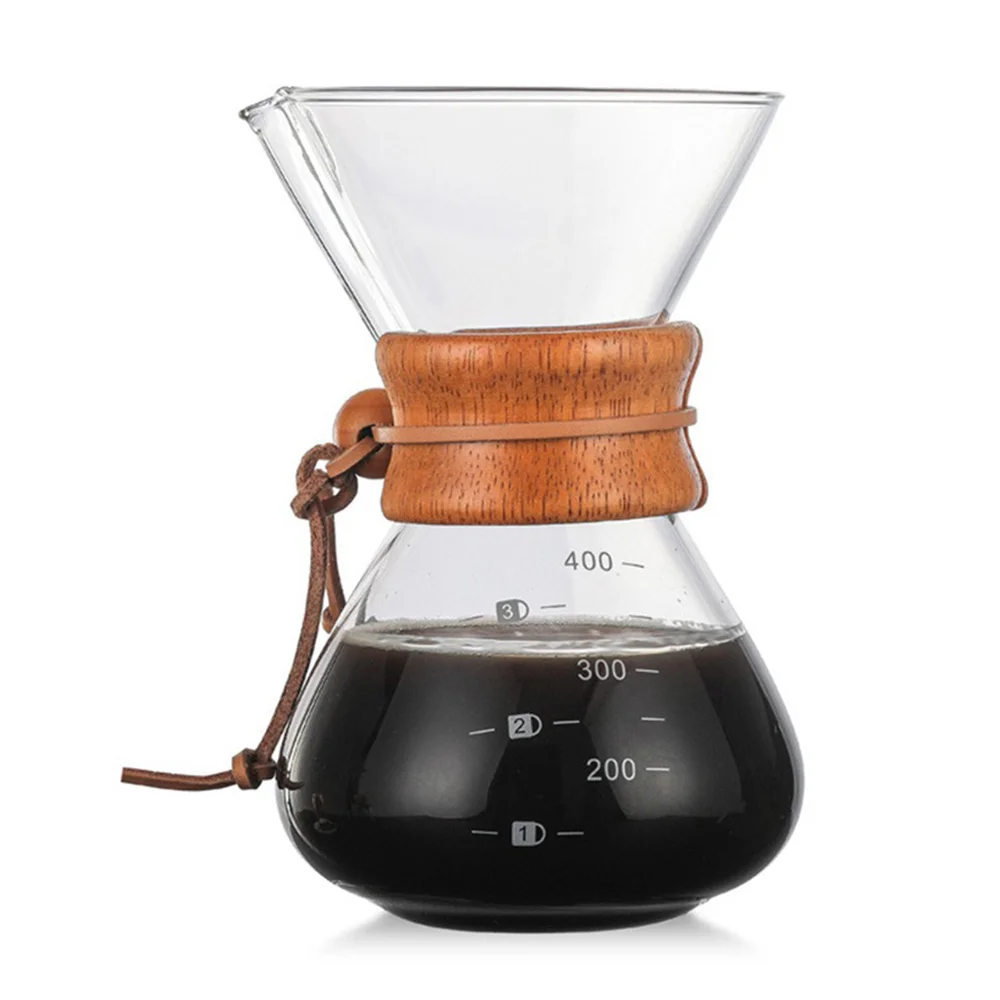 3. Великолепный дизайн-блестящий дизайн привлекательный и функциональный; Стеклянная Кофеварка включает в себя полированный деревянный воротник для безопасной заливки и Кожаный Галстук; Великолепный внешний вид для сложных кухонь