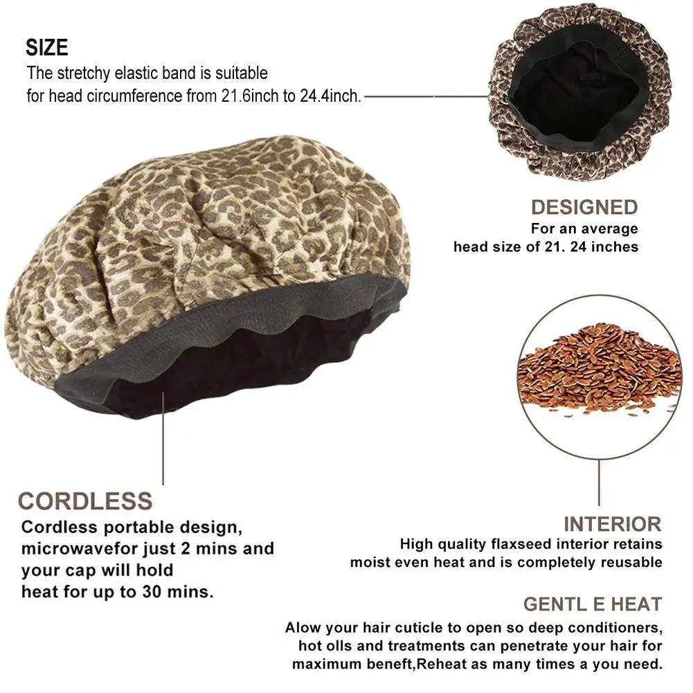 1. Функция: Эта нагревательная крышка имеет льняное семя в каждой верхней части. После нагревания в течение определенного периода времени, он может эффективно поддерживать тепло и способствовать здоровому росту волос.